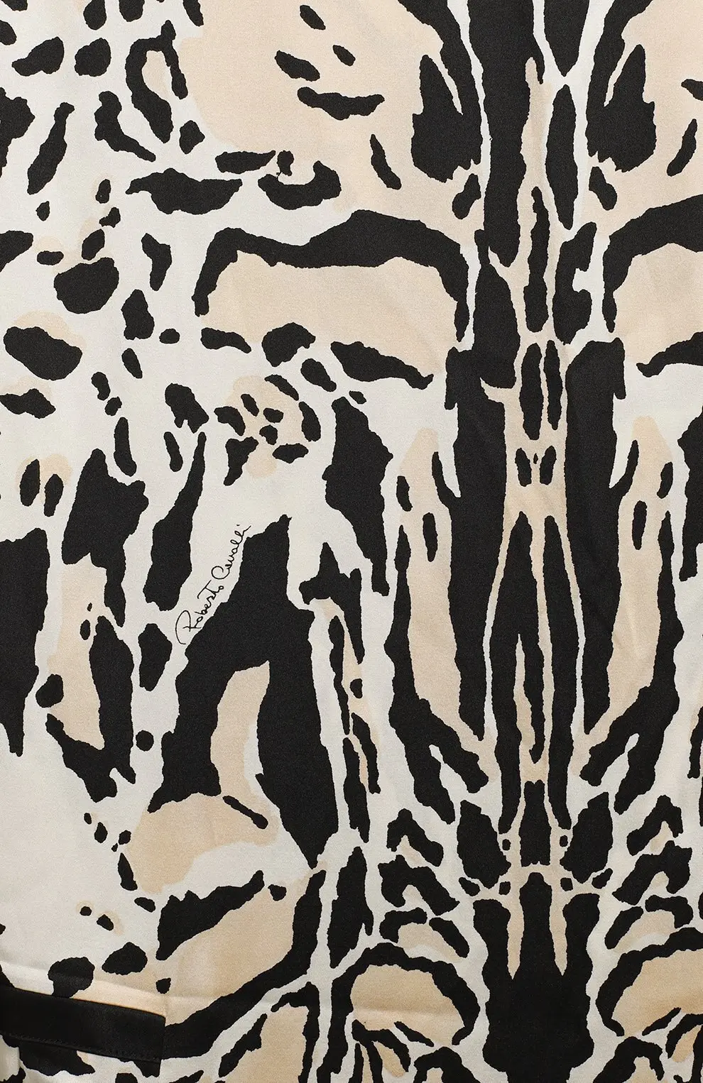 Шелковая юбка Roberto Cavalli с анималистичным принтом. Модель с расклешённым подолом подчёркивает движение и создаёт элегантный силуэт в духе бренда.