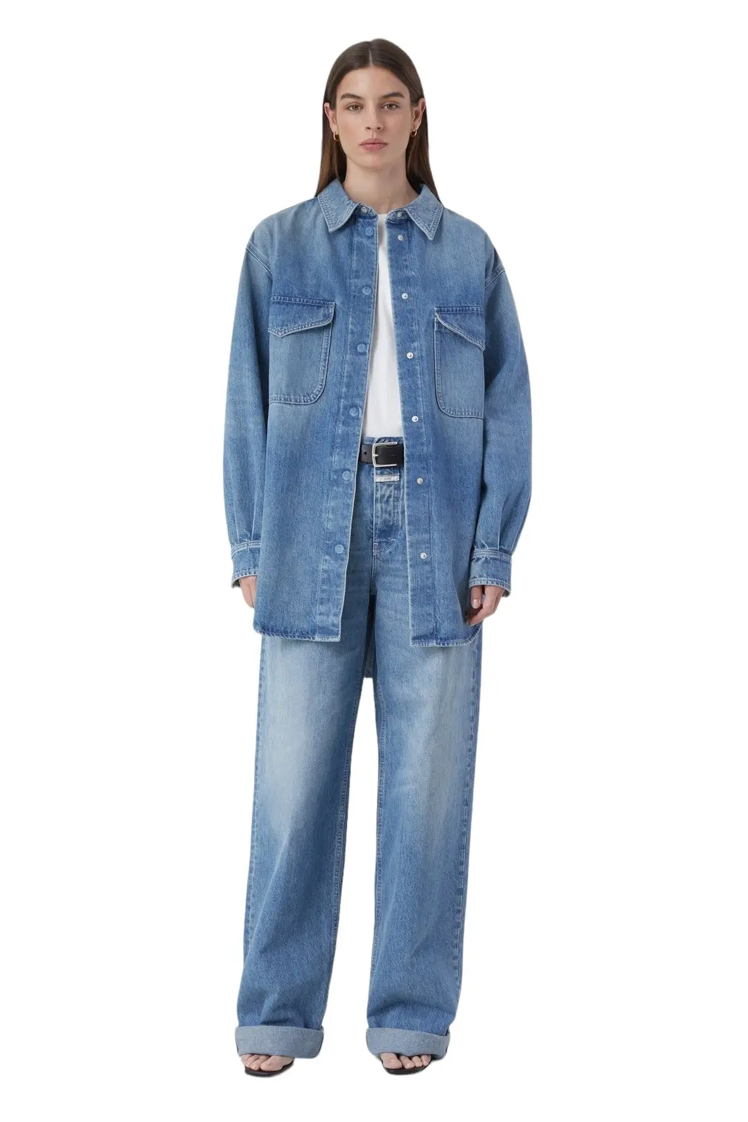 Рубашка-куртка Closed сделана из плотной и хлопковой джинсы в Италии. Изделие имеет винтажный застиранный эффект, карманы на груди и ассиметричную длину подола. Предлагаем сочетать с джинсами Closed из коллекции, чтобы получился тотал-деним образ.