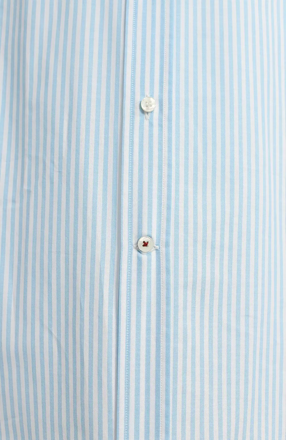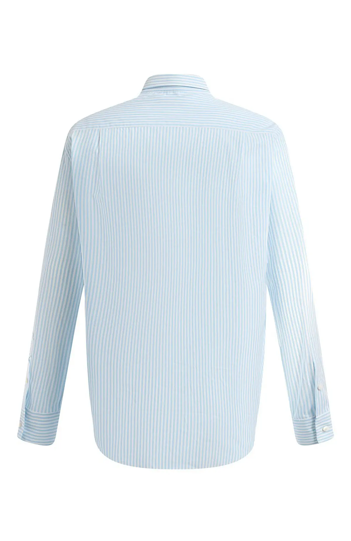 Классическая сорочка Loro Piana выполнена из премиального хлопка исключительной мягкости. Светло-голубая вертикальная полоска визуально вытягивает силуэт, добавляя образу лёгкости и элегантности. Модель с воротником на пуговицах и накладным нагрудным карманом идеально подойдёт для создания безупречного делового или smart-casual ансамбля.