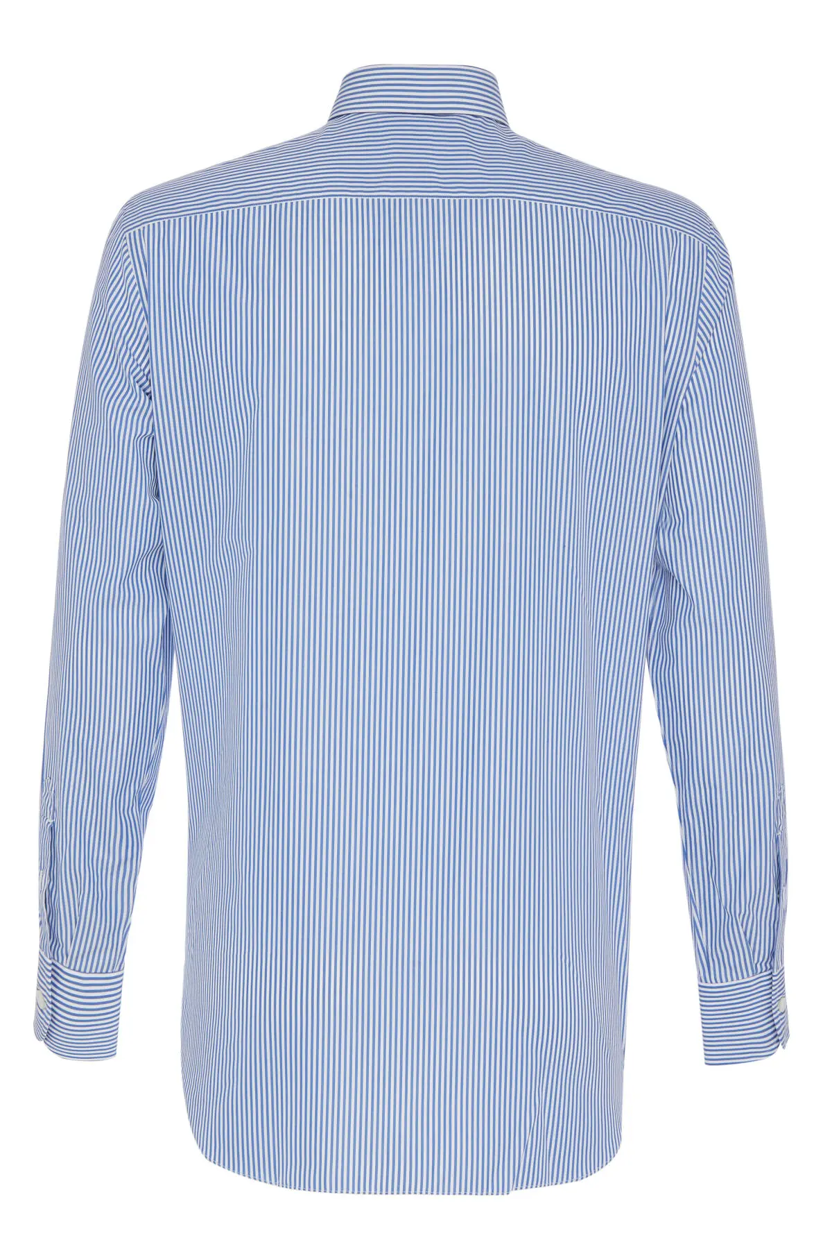 Рубашка Cesare Attolini выполнена из легкой хлопковой ткани и украшена тонкой вертикальной полоской в голубых тонах. Классический воротник и прямой крой подчеркивают элегантный силуэт и комфортную посадку. Модель легко комбинируется с деловыми костюмами и жакетами, добавляя образу свежести и аккуратности.