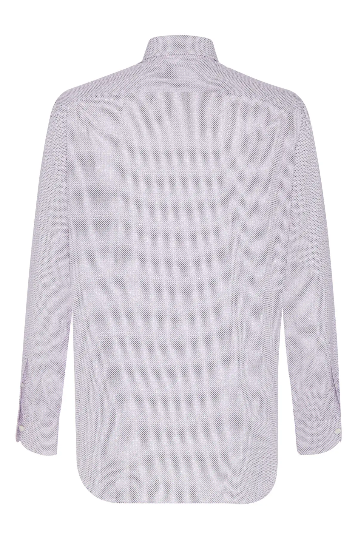 Рубашка Cesare Attolini выполнена из тонкого хлопка с деликатным микродизайном в нежно-лиловом оттенке. Полуприталенный крой с классическим воротником и длинными рукавами обеспечивает аккуратную посадку и комфорт в течение дня. Модель станет элегантным дополнением к деловому костюму и легко впишется в более расслабленные повседневные образы.