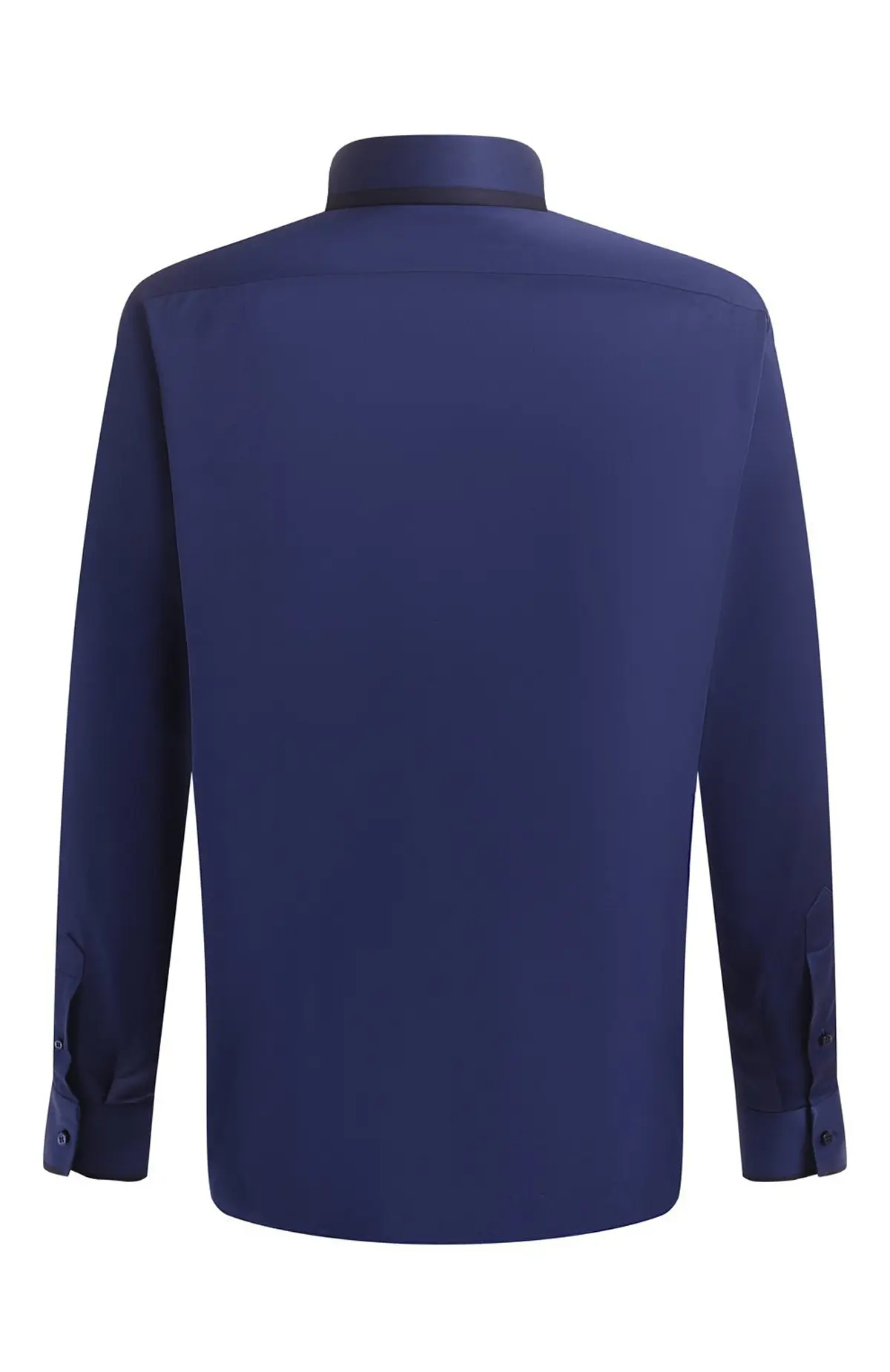 Хлопковая сорочка Zilli глубокого синего оттенка выполнена из тонкого мерсеризованного хлопка, отличающегося шелковистым блеском и лёгкостью. Классический крой с острым воротником и манжетами на пуговицах подчёркивает элегантность и утончённый стиль бренда. Универсальная модель подойдёт как для деловых образов, так и для повседневного гардероба.