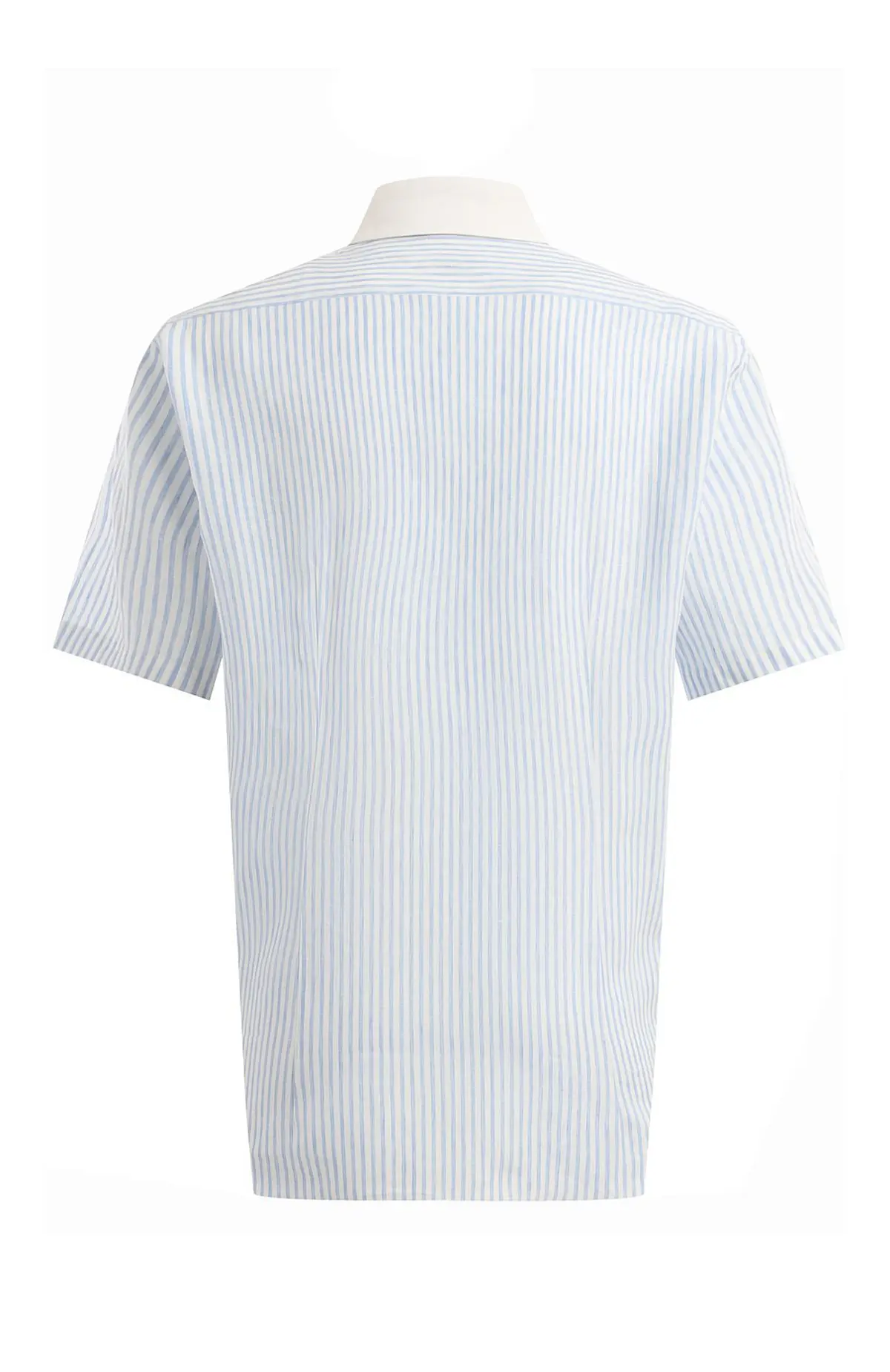 Льняная рубашка Zilli с коротким рукавом выполнена в голубую полоску. Белый воротник на пуговицах придает модели классический акцент. Легкая ткань идеально подходит для летнего гардероба и обеспечивает комфорт в жаркую погоду.
