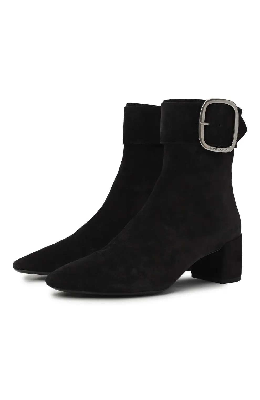 Эти ботильоны Saint Laurent выполнены из чёрной замши и отличаются лаконичным, но выразительным дизайном. Широкий ремень с крупной металлической пряжкой придаёт модели дерзкий акцент, а устойчивый невысокий каблук обеспечивает комфорт при носке. Элегантный силуэт и премиальные материалы делают эту пару универсальным выбором для стильных образов в повседневной и вечерней гардеробной комбинации.