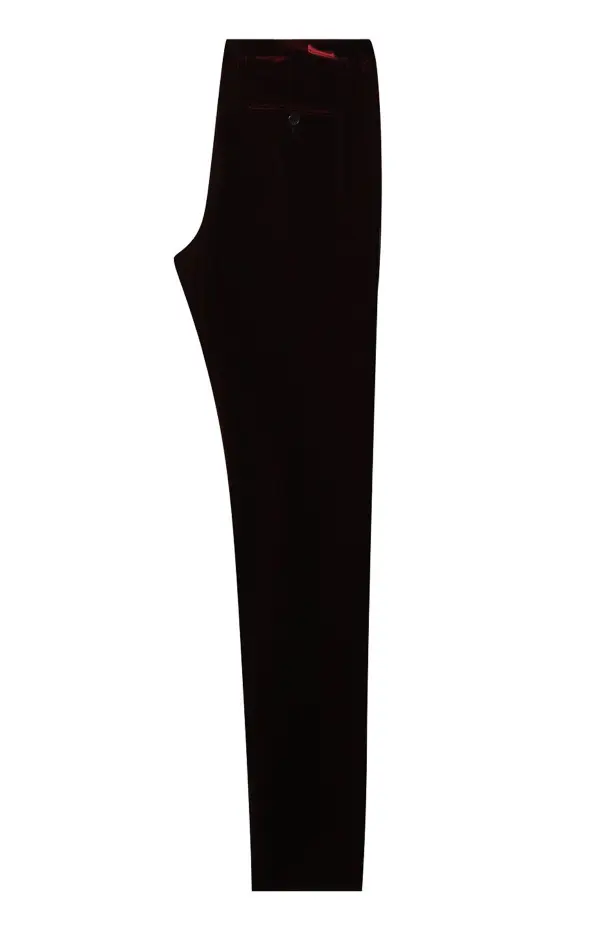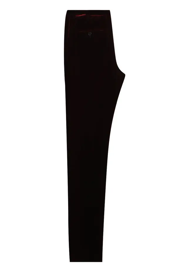 Брюки Saint Laurent из бархата глубокого бордового оттенка. Классический крой и минималистичный дизайн подчёркивают утончённый стиль бренда.