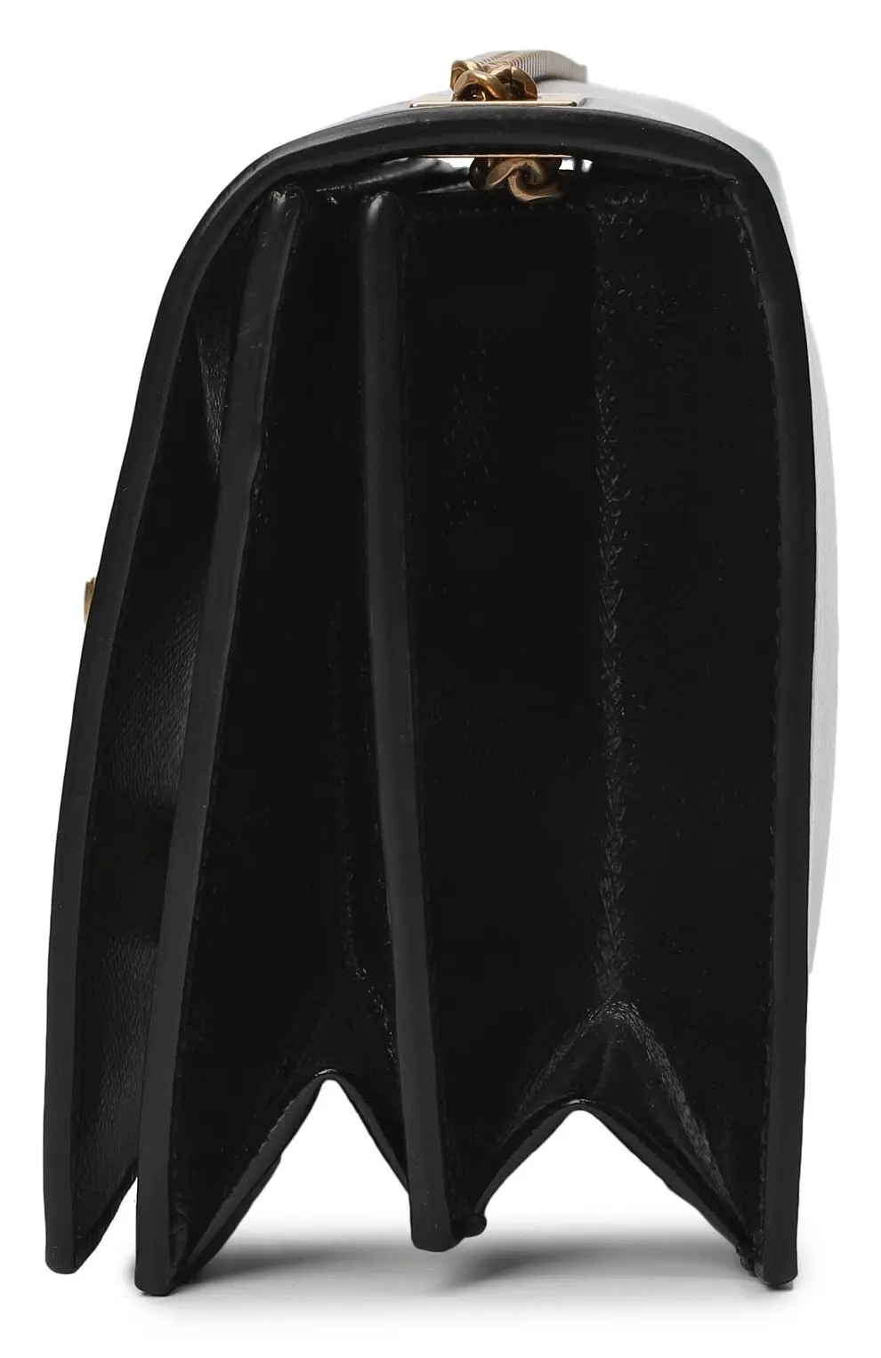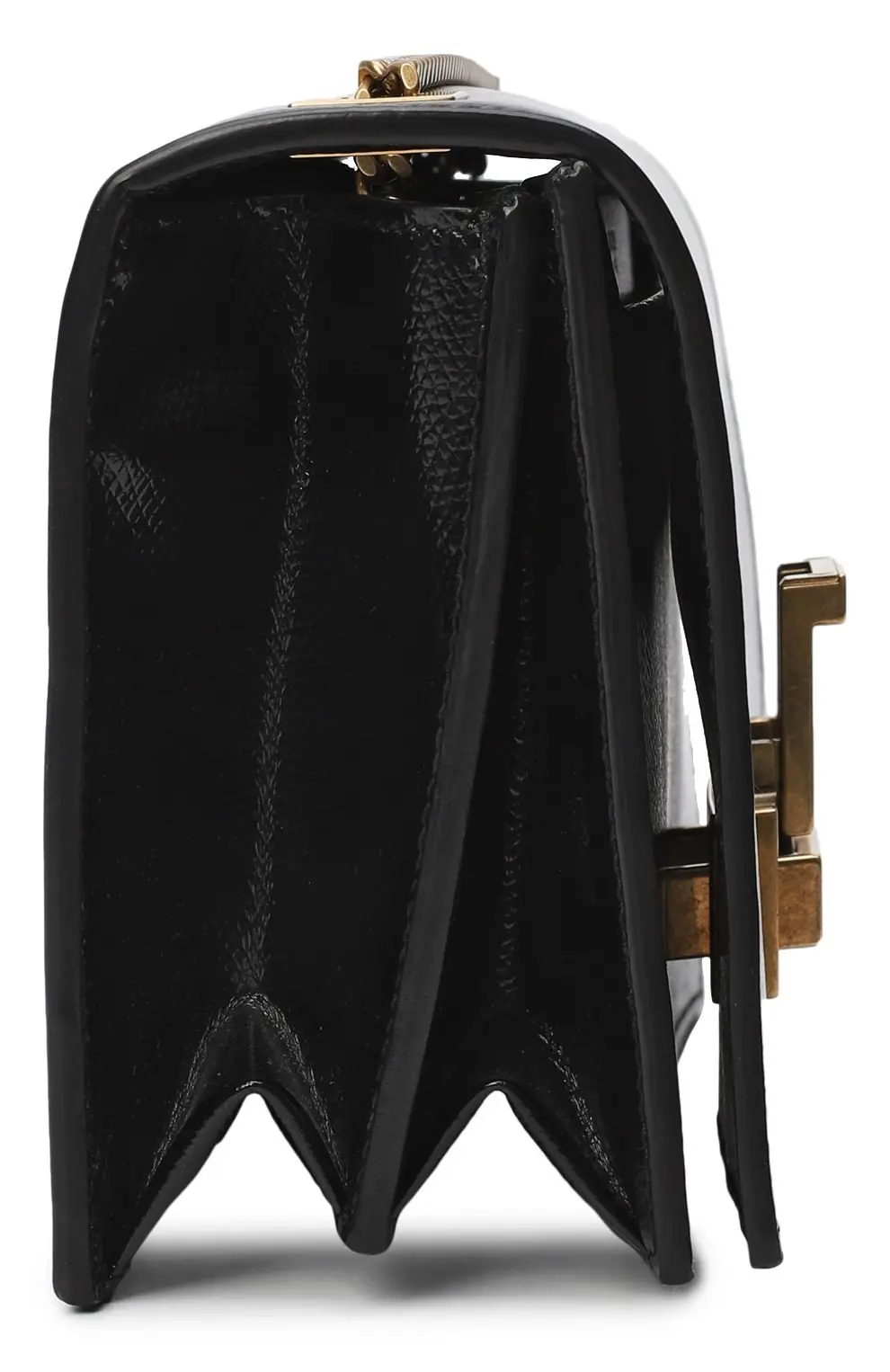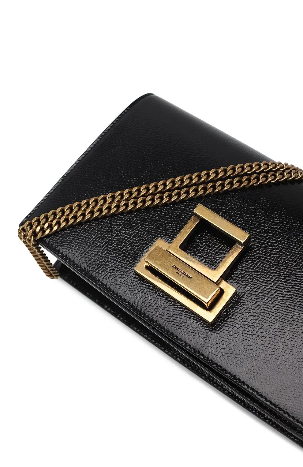 Классическая сумка Metropolis от Saint Laurent выполнена из чёрной кожи с лёгкой фактурой и украшена винтажной пряжкой из металла с золотистым покрытием. Строгий прямоугольный силуэт и цепочный ремень делают её универсальной — для повседневных и вечерних образов.