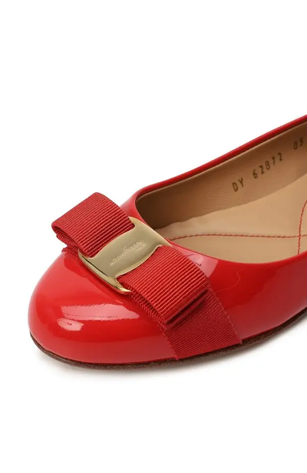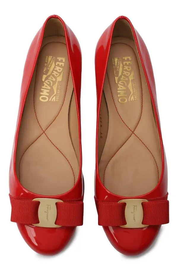 Эти балетки от Salvatore Ferragamo выполнены из лакированной кожи насыщенного красного цвета и украшены фирменным бантом Vara с золотистой пряжкой. Низкий каблук и удобная колодка обеспечивают комфорт при носке, а элегантный дизайн делает модель универсальной как для повседневных образов, так и для особых случаев.
