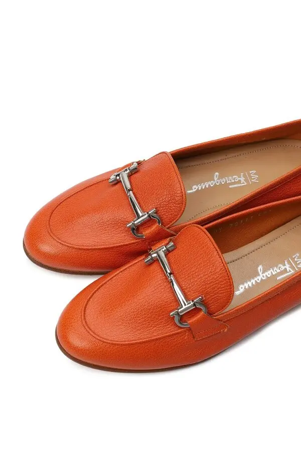 Женские лоферы My Informa от Salvatore Ferragamo выполнены из мягкой зернистой кожи насыщенного оранжевого оттенка, который добавляет яркий акцент в повседневный гардероб. Классический силуэт украшен культовым металлическим декором в виде серебристого "битлока", подчеркивающего элегантность бренда. Тонкая подошва и лаконичный дизайн делают модель комфортной и универсальной — идеально подходящей как для деловых, так и для повседневных образов.