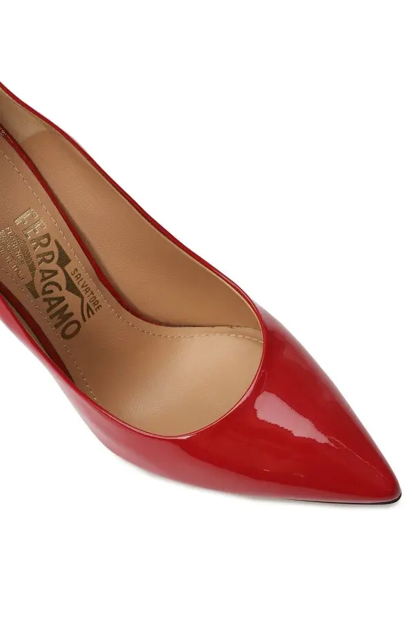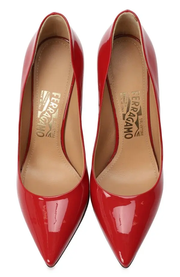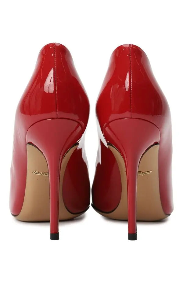 Эти туфли-лодочки от Salvatore Ferragamo выполнены из глянцевой красной лакированной кожи, которая придает образу выразительность и элегантный блеск. Зауженный мысок подчеркивает изящество силуэта, а высокий тонкий каблук добавляет женственности и визуально вытягивает линию ног. Внутренняя отделка из мягкой кожи обеспечивает комфорт при носке, а прочная подошва гарантирует надежность. Классическая модель в ярком оттенке красного станет акцентом в любом вечернем или праздничном образе.