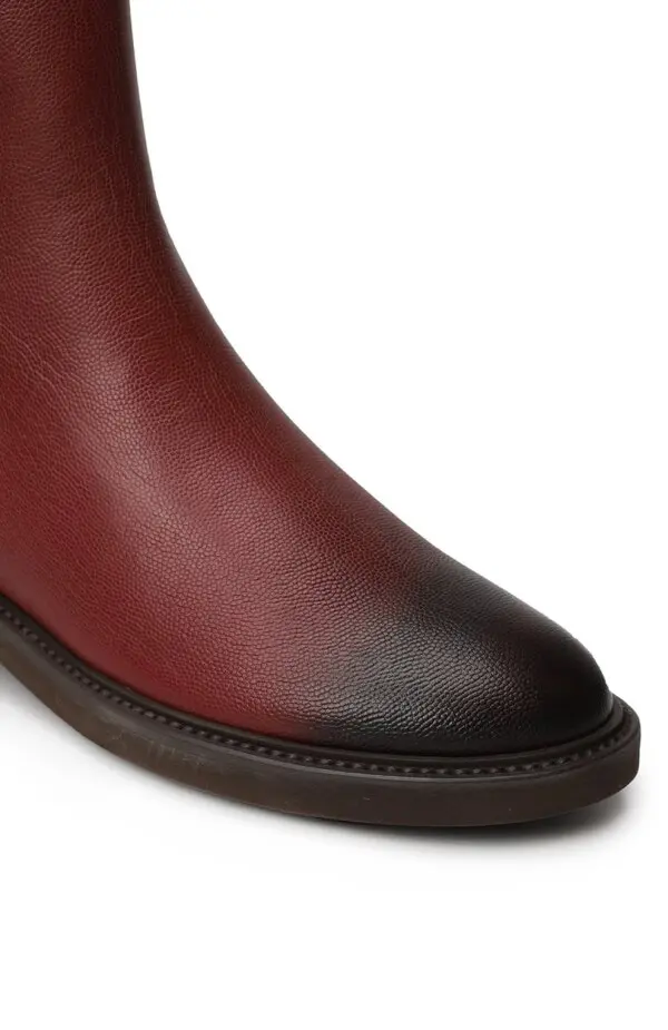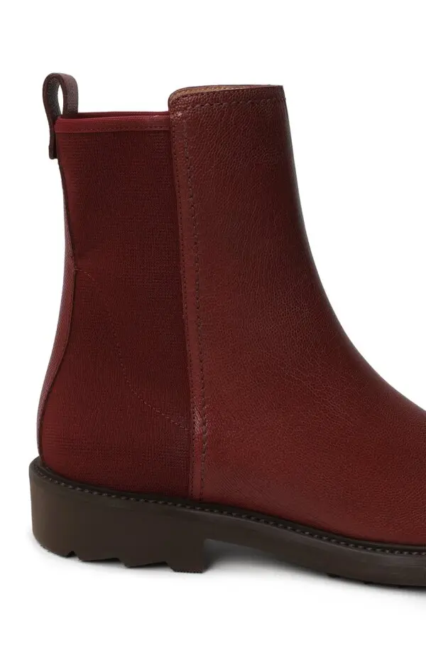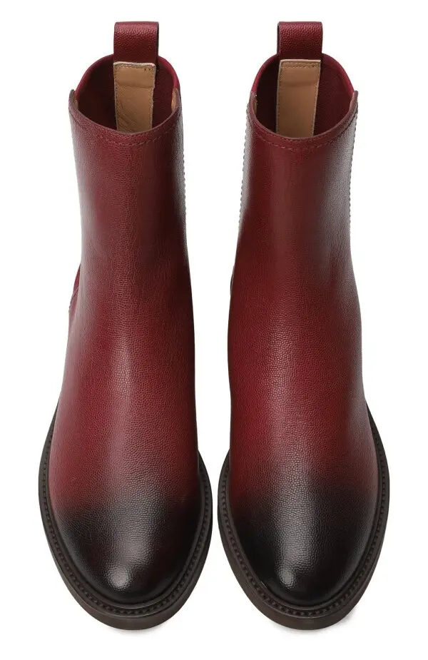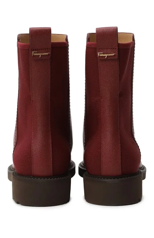 Ботильоны Fazio от Salvatore Ferragamo выполнены из мягкой зернистой кожи глубокого бордового оттенка с затемнённым мыском, создающим эффект плавного градиента. Лаконичный силуэт челси дополнен эластичными вставками и удобной петлёй для лёгкого надевания. Контрастная рельефная подошва обеспечивает комфорт и надёжное сцепление, а изысканное сочетание минимализма и элегантности делает модель универсальной как для повседневных, так и для более утончённых образов.