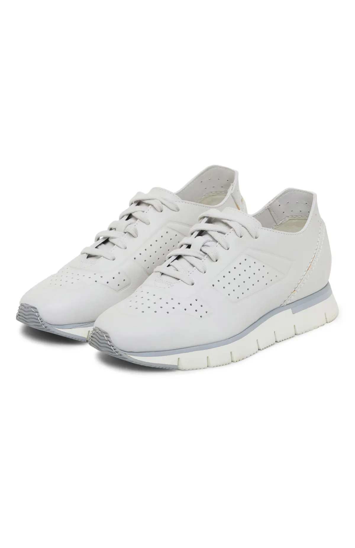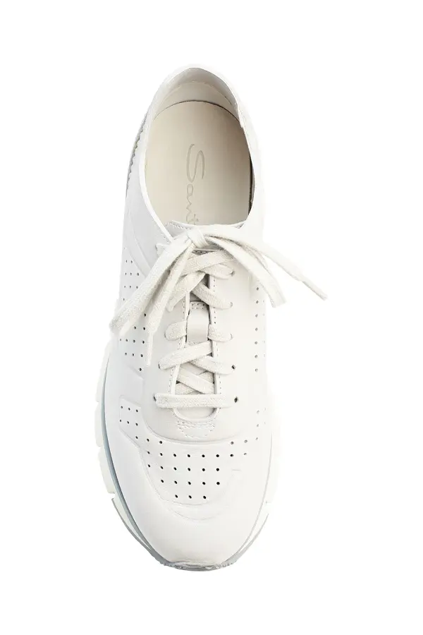 Кроссовки выполнены из мягкой матовой кожи с перфорацией для лучшей вентиляции. Лёгкая гибкая подошва с прорезями смягчает шаг и создаёт аккуратный, лаконичный силуэт. Аккуратная шнуровка и кожаная подкладка обеспечивают комфортное прилегание в течение дня.