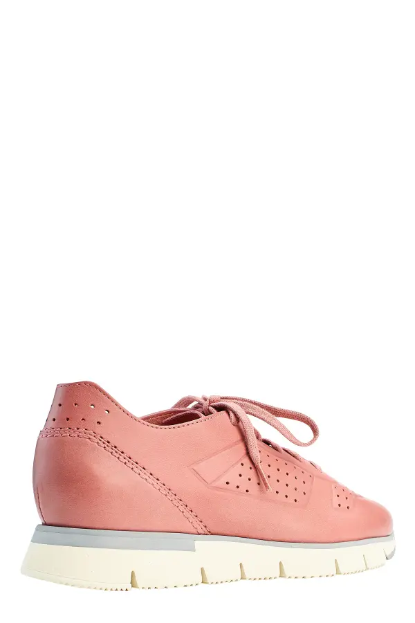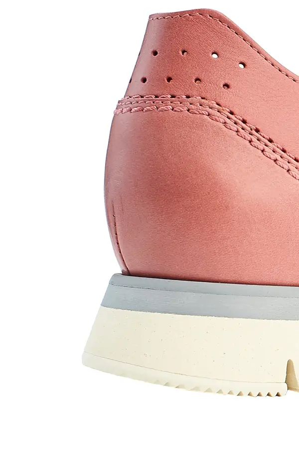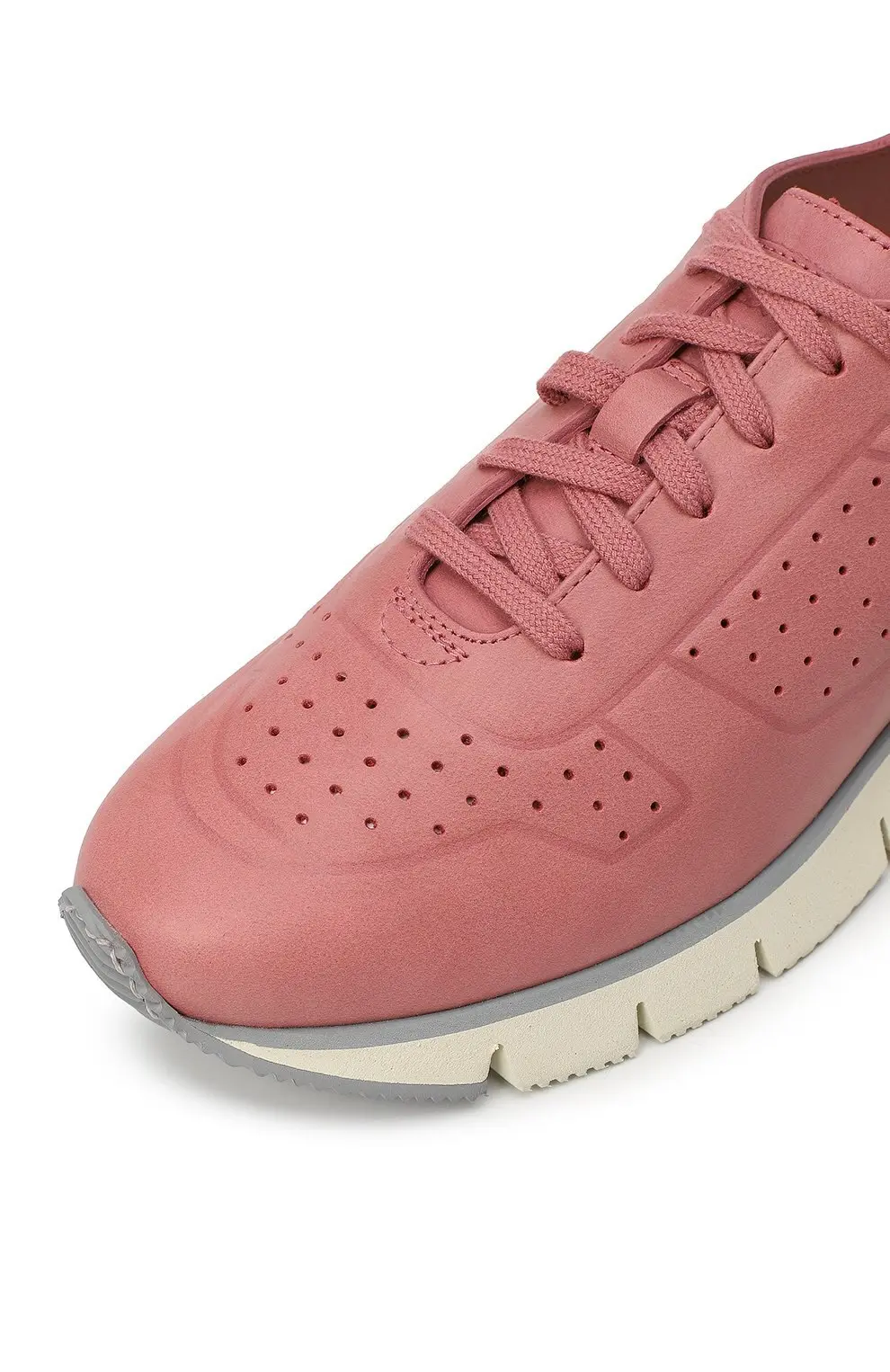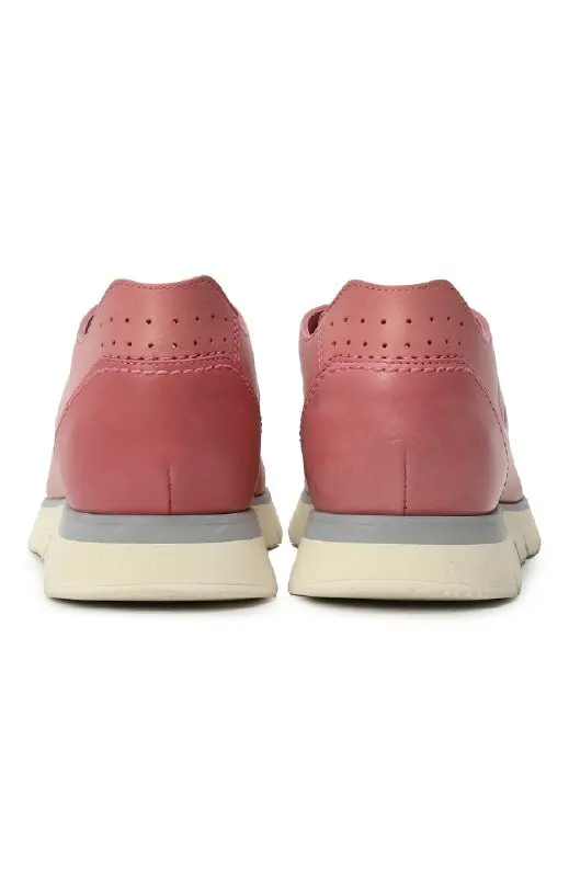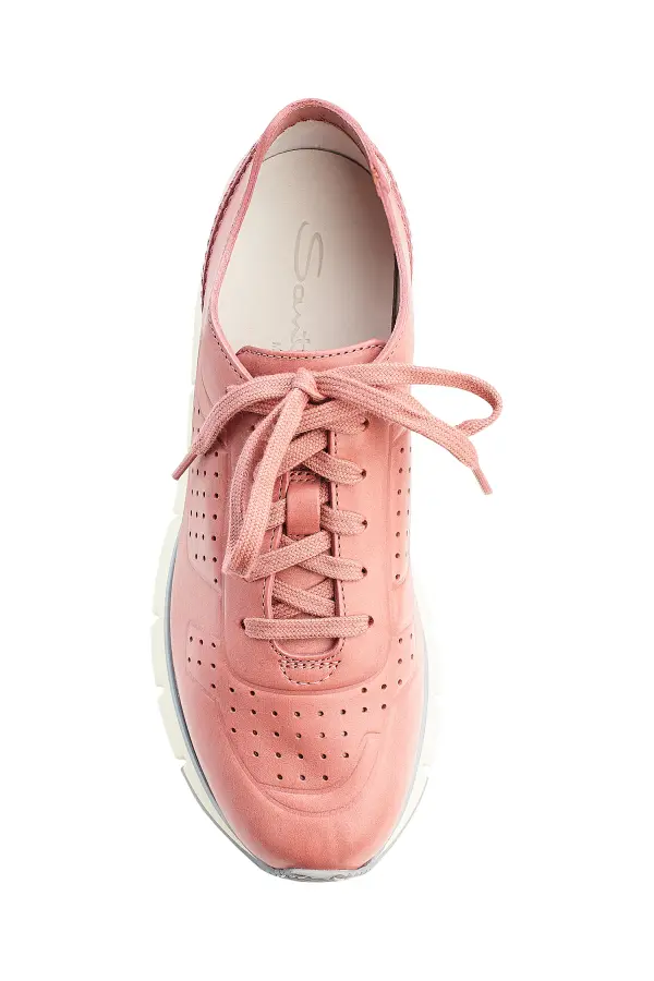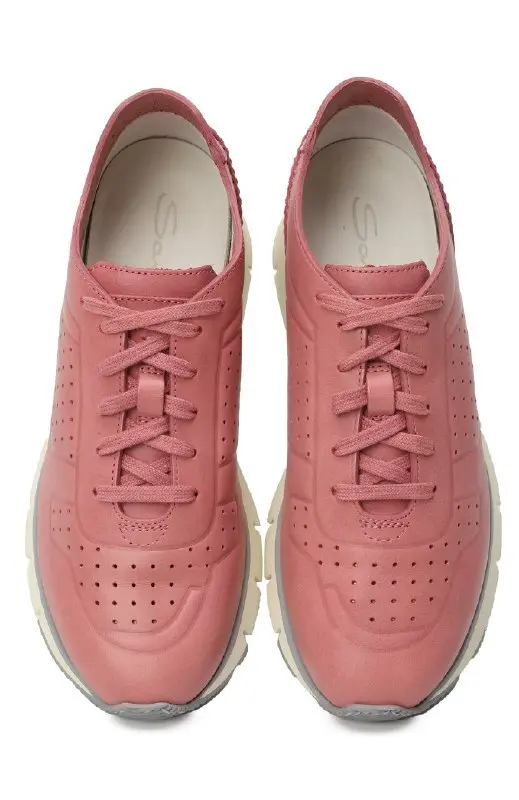 Кроссовки Santoni выполнены из мягкой кожи благородного розового оттенка, отличающейся бархатистой фактурой и премиальным качеством. Минималистичный дизайн украшен аккуратной перфорацией, которая не только подчеркивает современный стиль модели, но и обеспечивает дополнительную вентиляцию. Легкая гибкая подошва с прорезями гарантирует комфорт и амортизацию при ходьбе, а сдержанная серая деталь на носке добавляет практичности. Эти кроссовки идеально сочетают элегантность итальянского дизайна и удобство на каждый день.