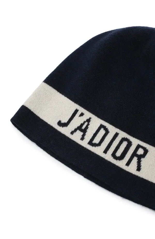Кашемировая шапка от Dior выполнена в лаконичном спортивно-шикарном стиле. Модель глубокого синего оттенка дополнена контрастной широкой полосой молочного цвета с фирменным жаккардовым логотипом “J’ADIOR”, что подчеркивает узнаваемую эстетику Дома. Мягкий и теплый кашемир обеспечивает комфорт и защиту в холодное время года, а эластичная структура делает посадку максимально удобной. Эта шапка станет изысканным аксессуаром для зимнего гардероба, добавляя образу как практичность, так и модный акцент.