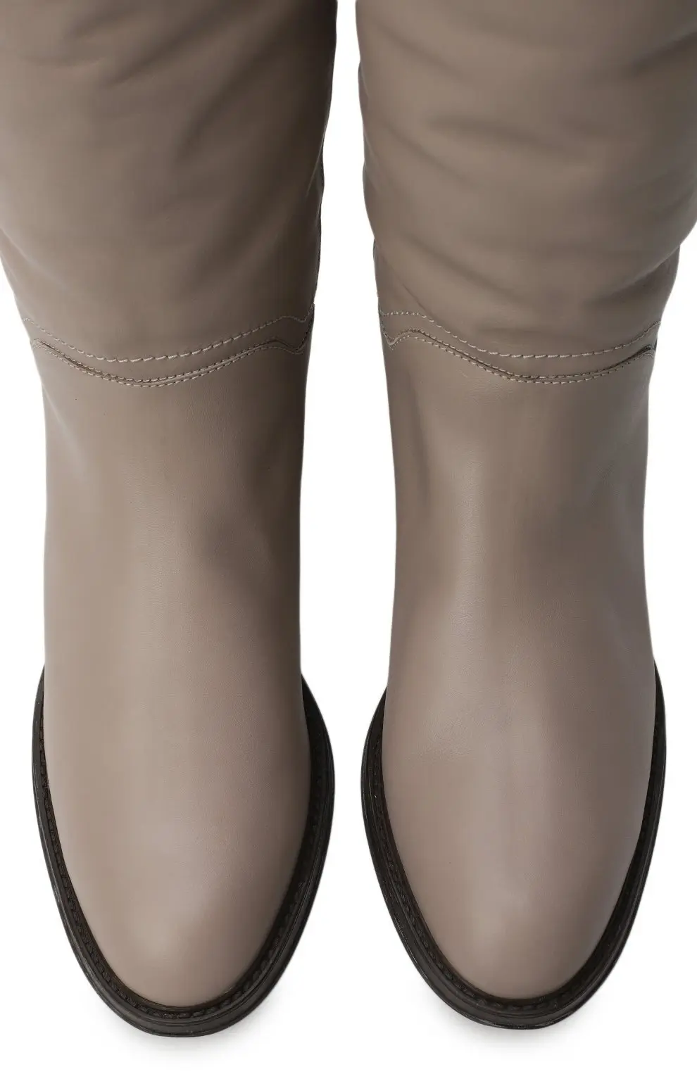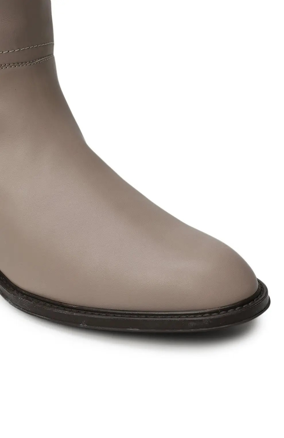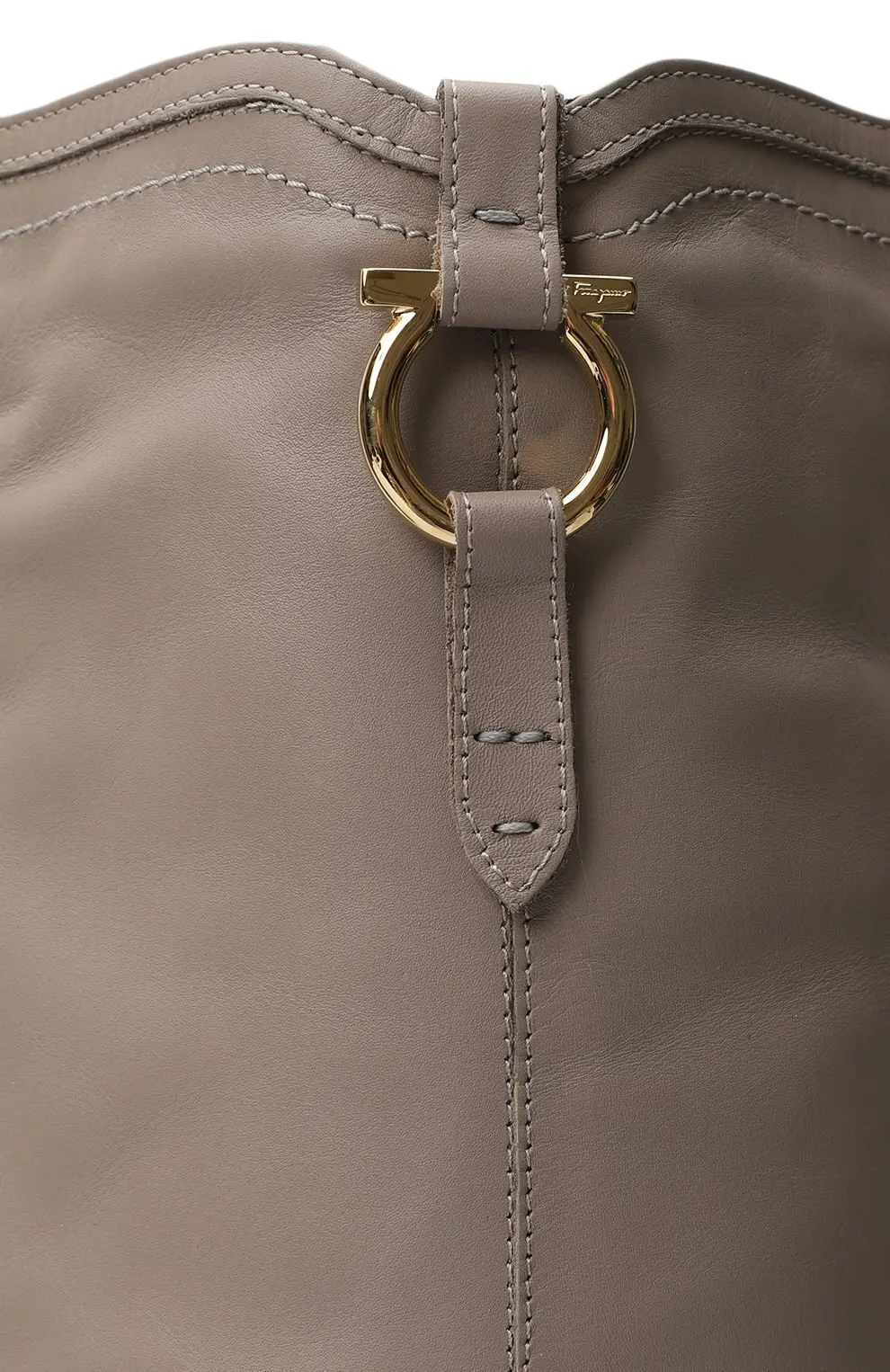 Сапоги Salvatore Ferragamo из мягкой кожи светло-бежевого оттенка. Лаконичный силуэт с невысоким каблуком дополняет элегантная деталь — фирменное кольцо Gancini в золотистом тоне, отражающее утончённую эстетику бренда.