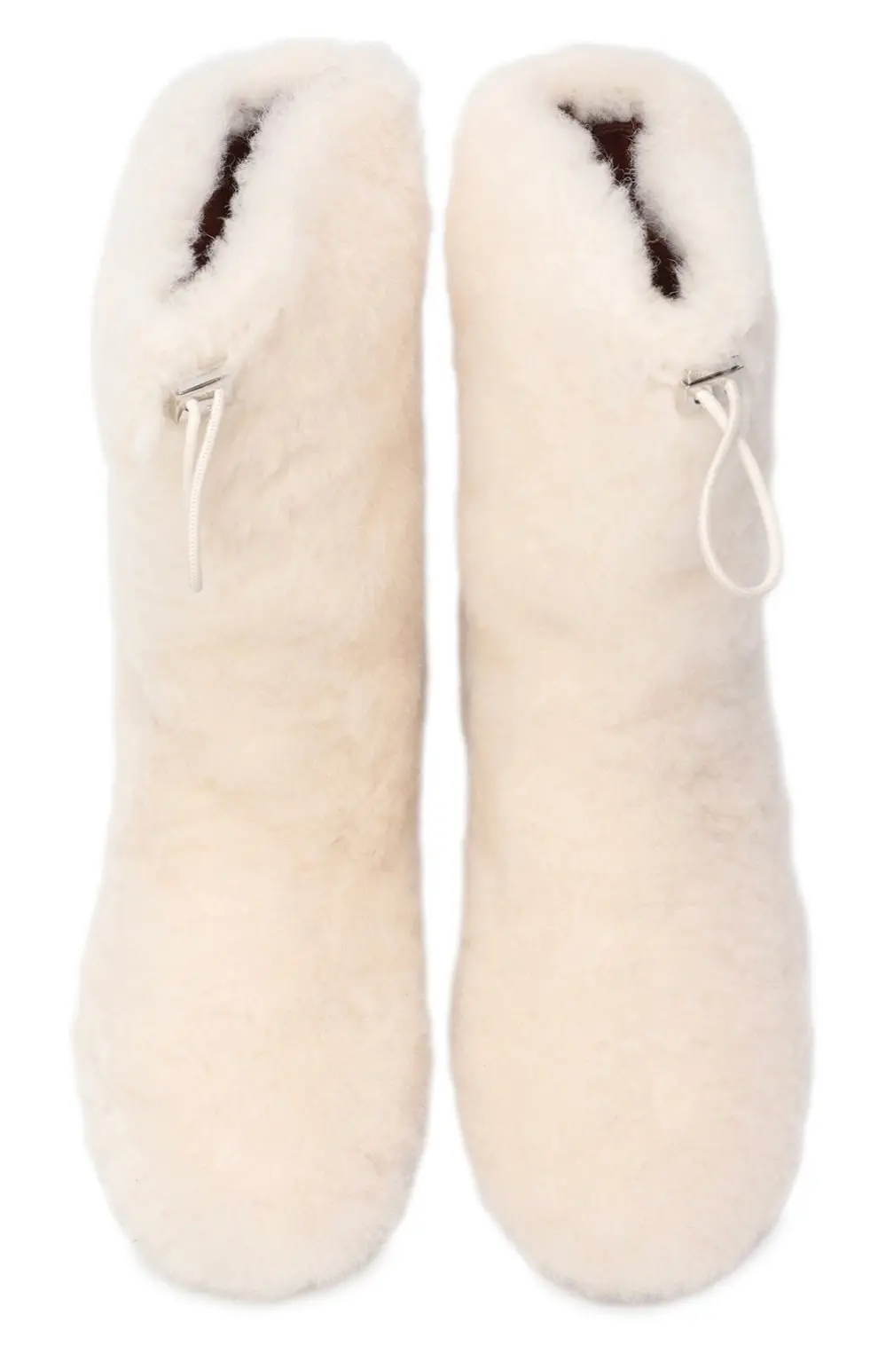 Женские сапоги от Loro Piana выполнены из мягкого овечьего меха в молочном оттенке. Модель с высоким голенищем и регулируемым шнурком на кулиске обеспечивает комфортную посадку и надёжную защиту от холода. Подошва с рельефным рисунком гарантирует удобство при ходьбе. Сапоги сочетают уют и изысканный минимализм, характерный для стиля Loro Piana.