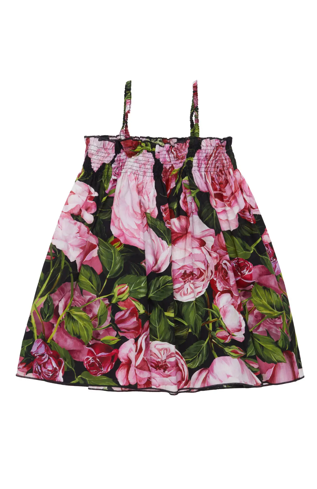 Сарафан выполнен из лёгкой ткани с ярким цветочным принтом. Свободный крой с эластичной верхней частью и тонкими бретелями обеспечивает комфортную посадку и свободу движений. Идеальный вариант для летних повседневных образов.