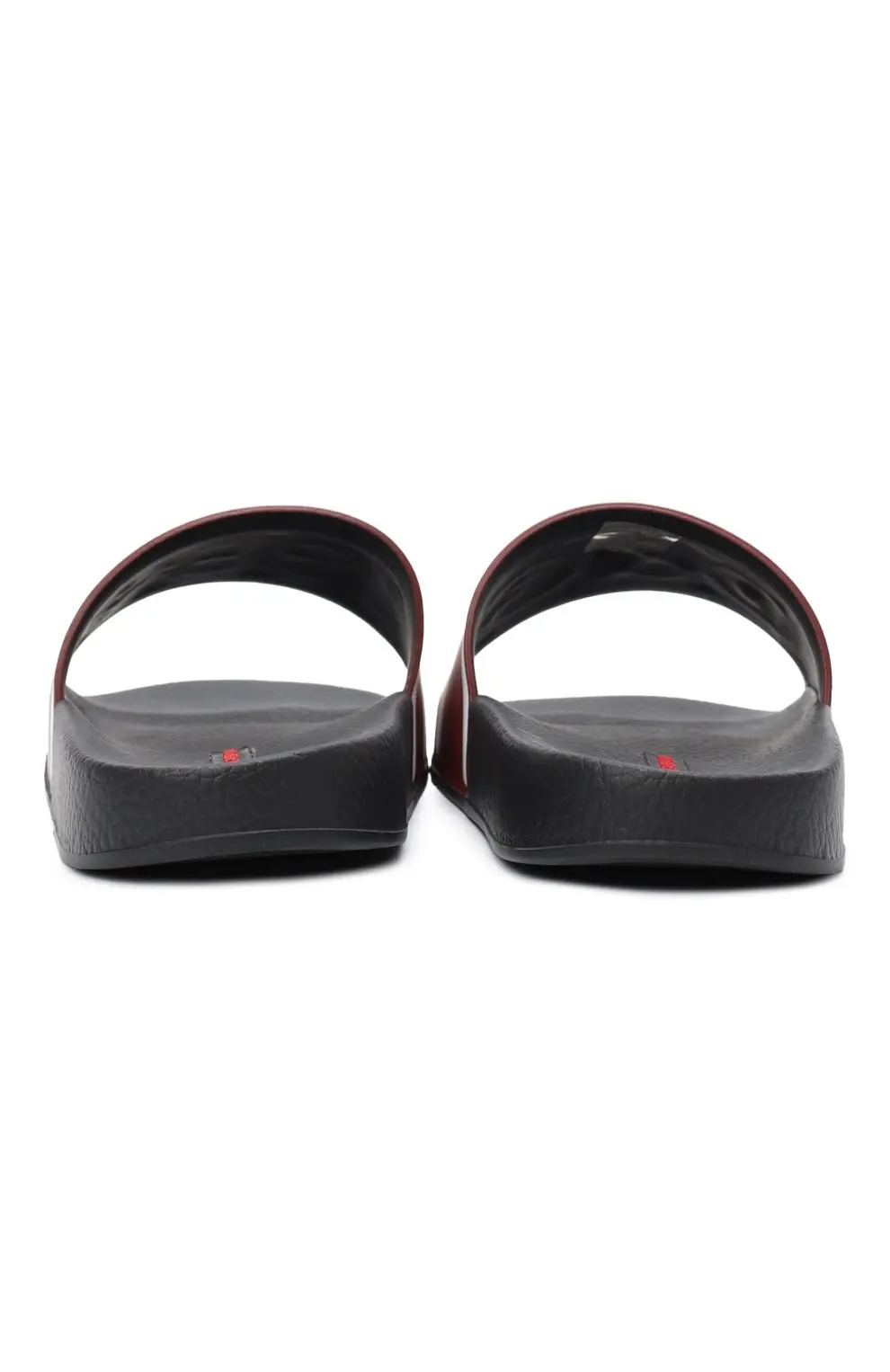 Шлепанцы выполнены из гладного материала насыщенного тёмно-красного оттенка. Широкий ремень с рельефной фактурой обеспечивает надёжную посадку и подчёркивает современный минимализм формы. Лёгкая подошва дарит комфорт при движении и завершает образ выразительным акцентом.