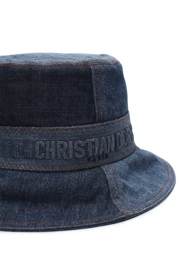 Эта стильная панама от Dior выполнена из прочного синего денима с контрастной строчкой. Модель украшена широкой лентой с вышитым тоном-в-тон логотипом Christian Dior Paris, что подчеркивает узнаваемую эстетику бренда. Современный аксессуар, который легко впишется как в повседневный, так и в городской образ, добавляя нотку casual-шика.