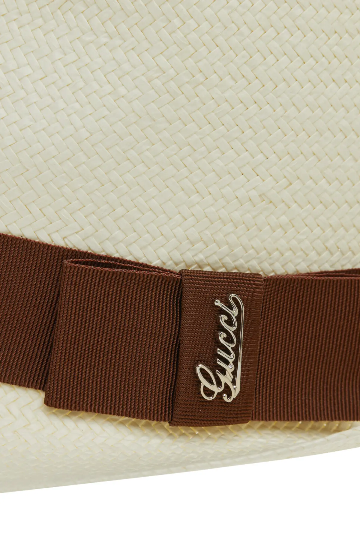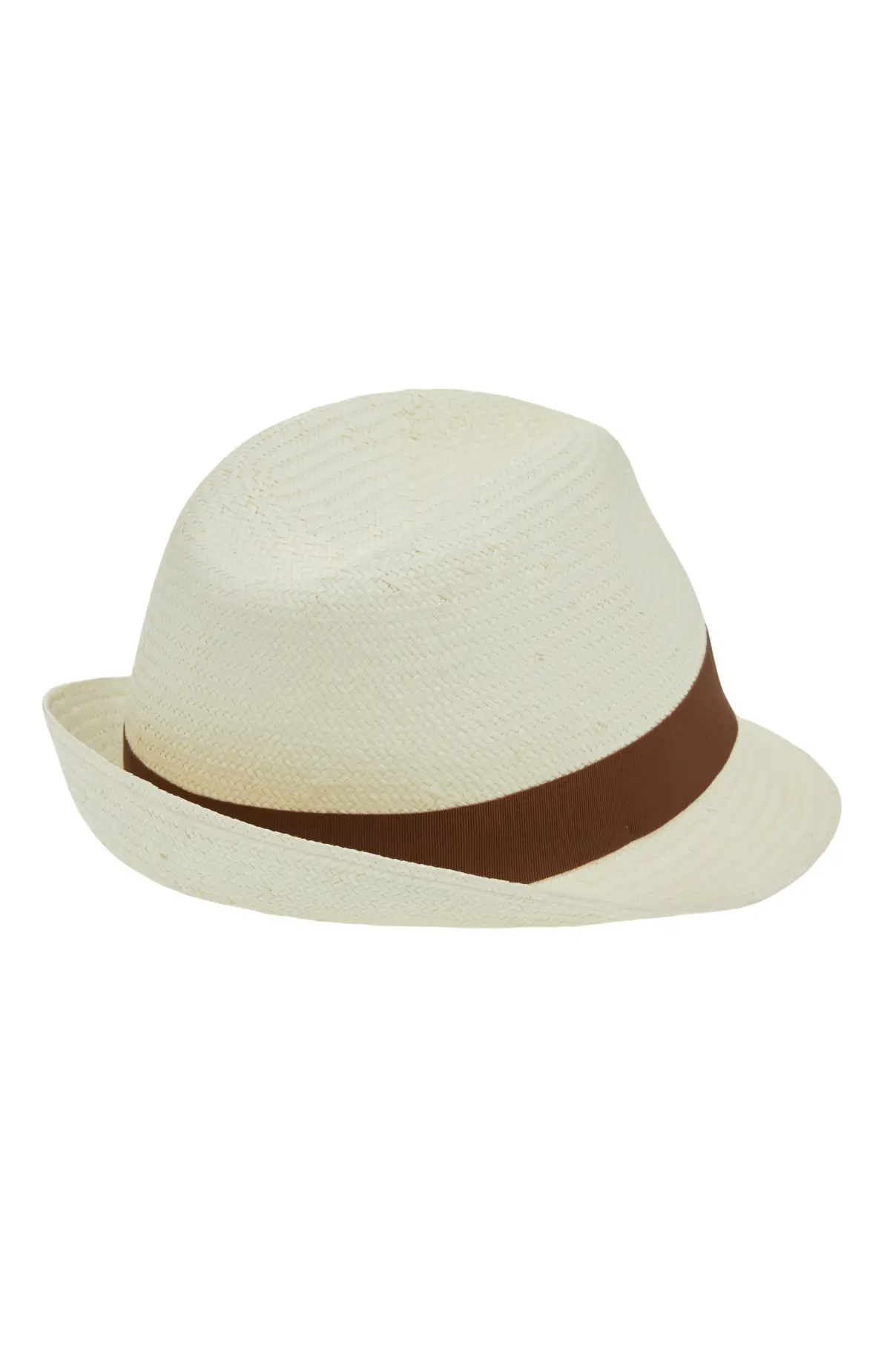Шляпа выполнена из лёгкого бумажного текстиля с плотным плетением и матовой фактурой. Лаконичная форма дополнена контрастной лентой с декоративным элементом, создающим изящный акцент. Модель сохраняет форму и обеспечивает комфорт в тёплую погоду.
