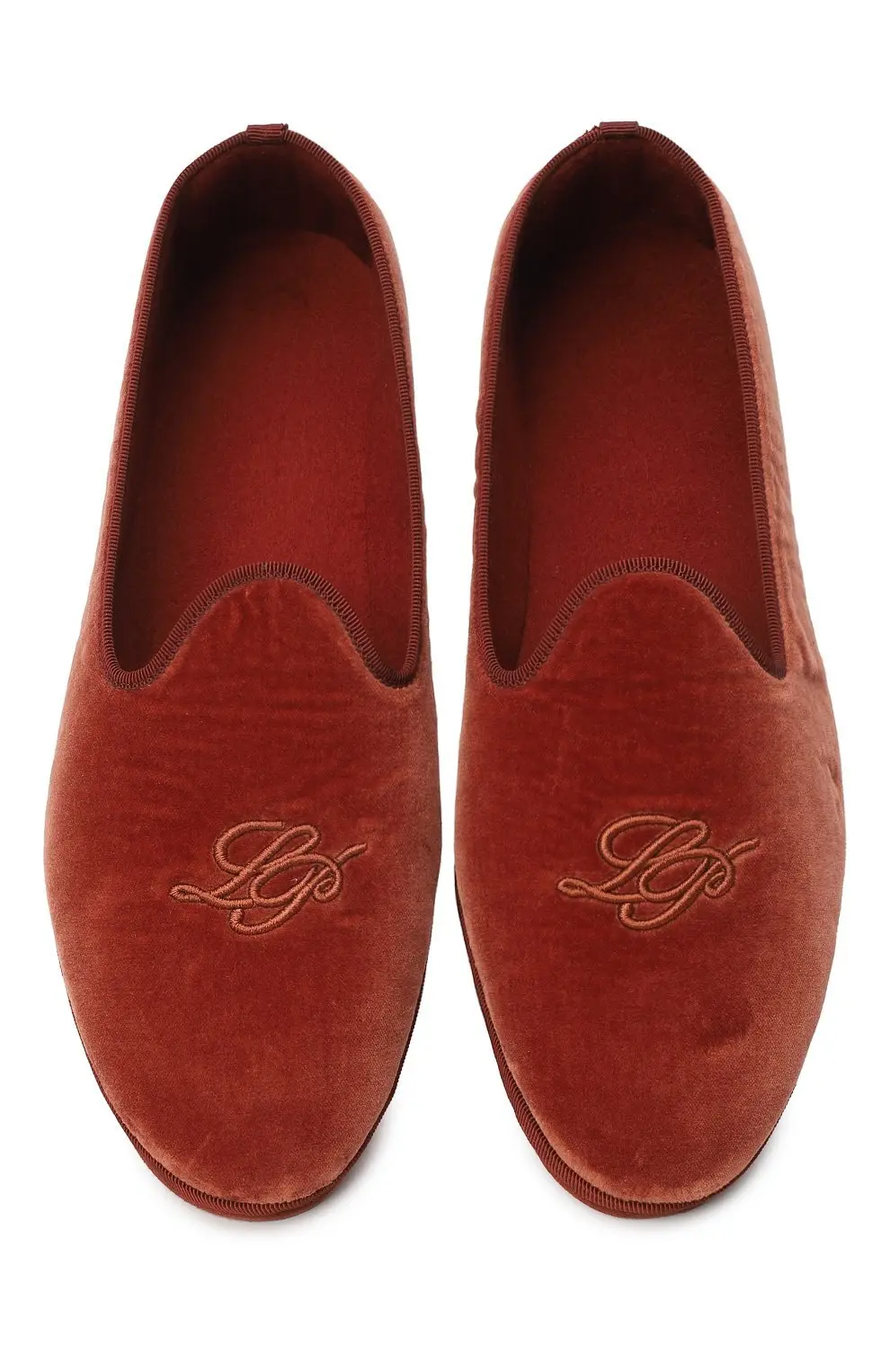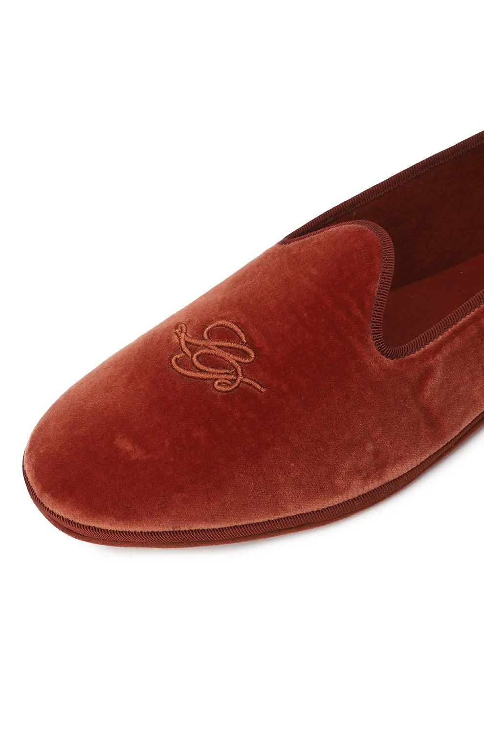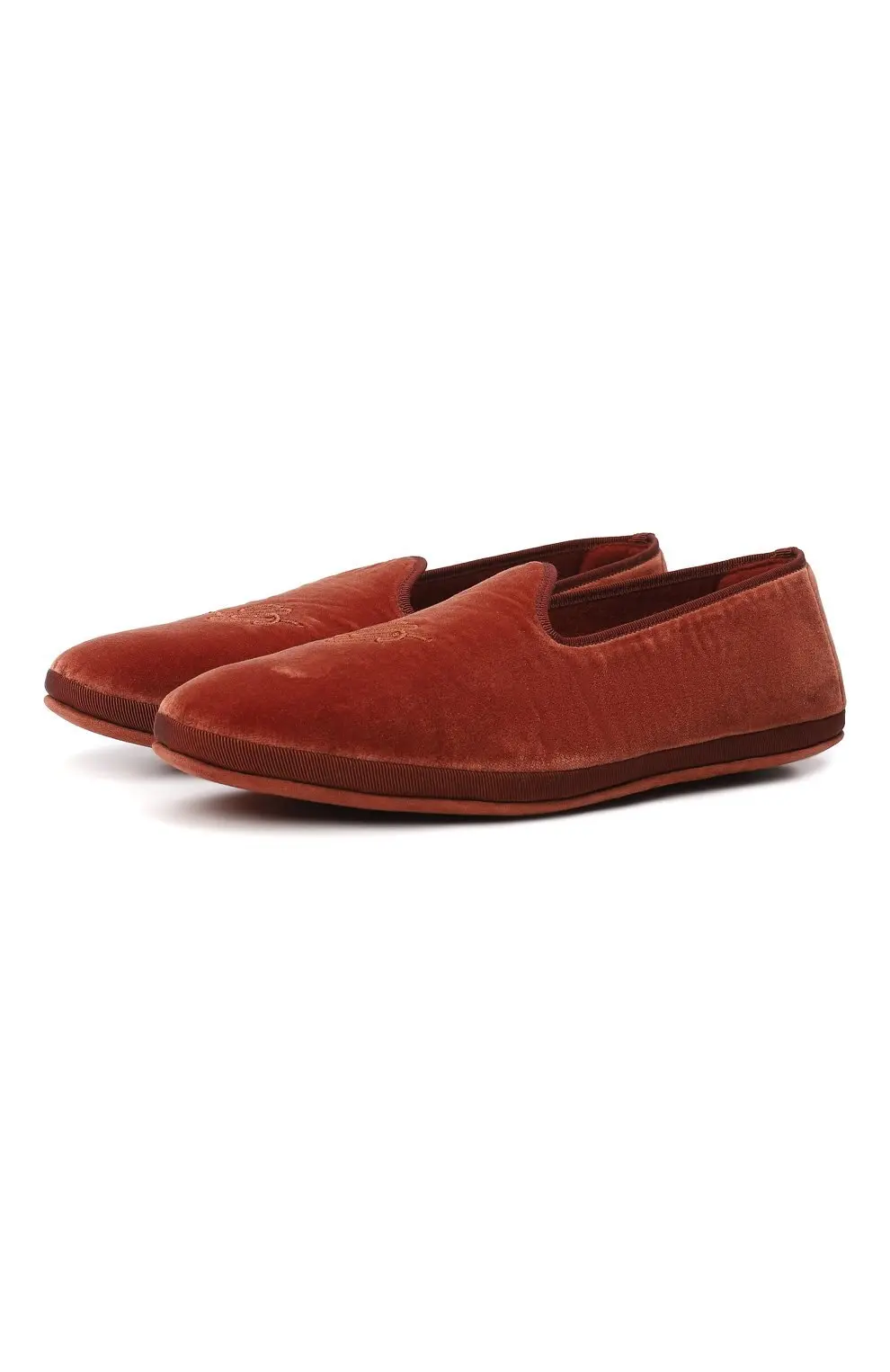 Слиперы Venice Loro Piana выполнены из бархата насыщенного терракотового оттенка и украшены деликатной вышивкой с логотипом бренда. Модель отличается мягкой посадкой и лёгкой гибкой подошвой, что делает её комфортной для носки в течение всего дня. Элегантный и универсальный дизайн позволяет сочетать обувь как с повседневными образами, так и с более изысканными ансамблями, подчеркивая фирменный утончённый стиль Loro Piana.