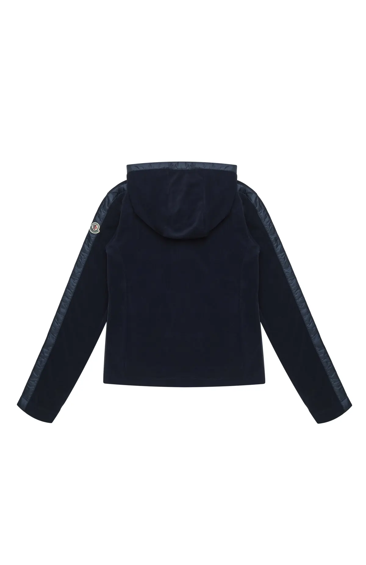 Кофта с капюшоном выполнена из плотного материала с гладкой поверхностью и мягкой внутренней стороной. Прямой крой и аккуратная молния формируют чистый, сдержанный силуэт. Модель отличается функциональностью и обеспечивает комфортное прилегание в повседневных образах.