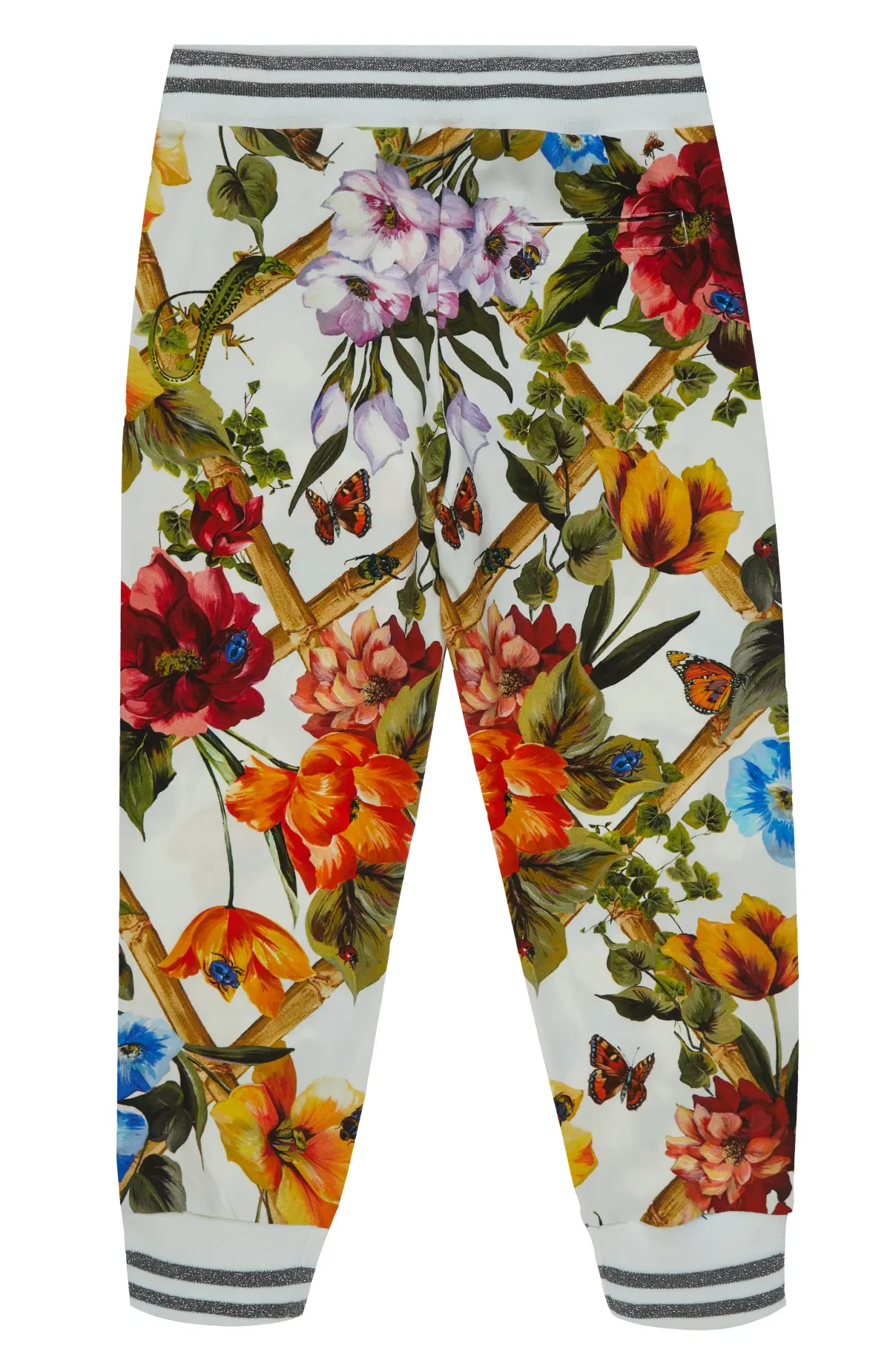 Спортивный костюм выполнен из мягкого эластичного материала с гладкой поверхностью, обеспечивающего комфорт при движении. Яркий цветочный принт создаёт выразительный визуальный акцент и придаёт модели динамичный характер. Кофта с капюшоном и брюки с эластичным поясом формируют сбалансированный силуэт и подчёркивают непринуждённый стиль.
