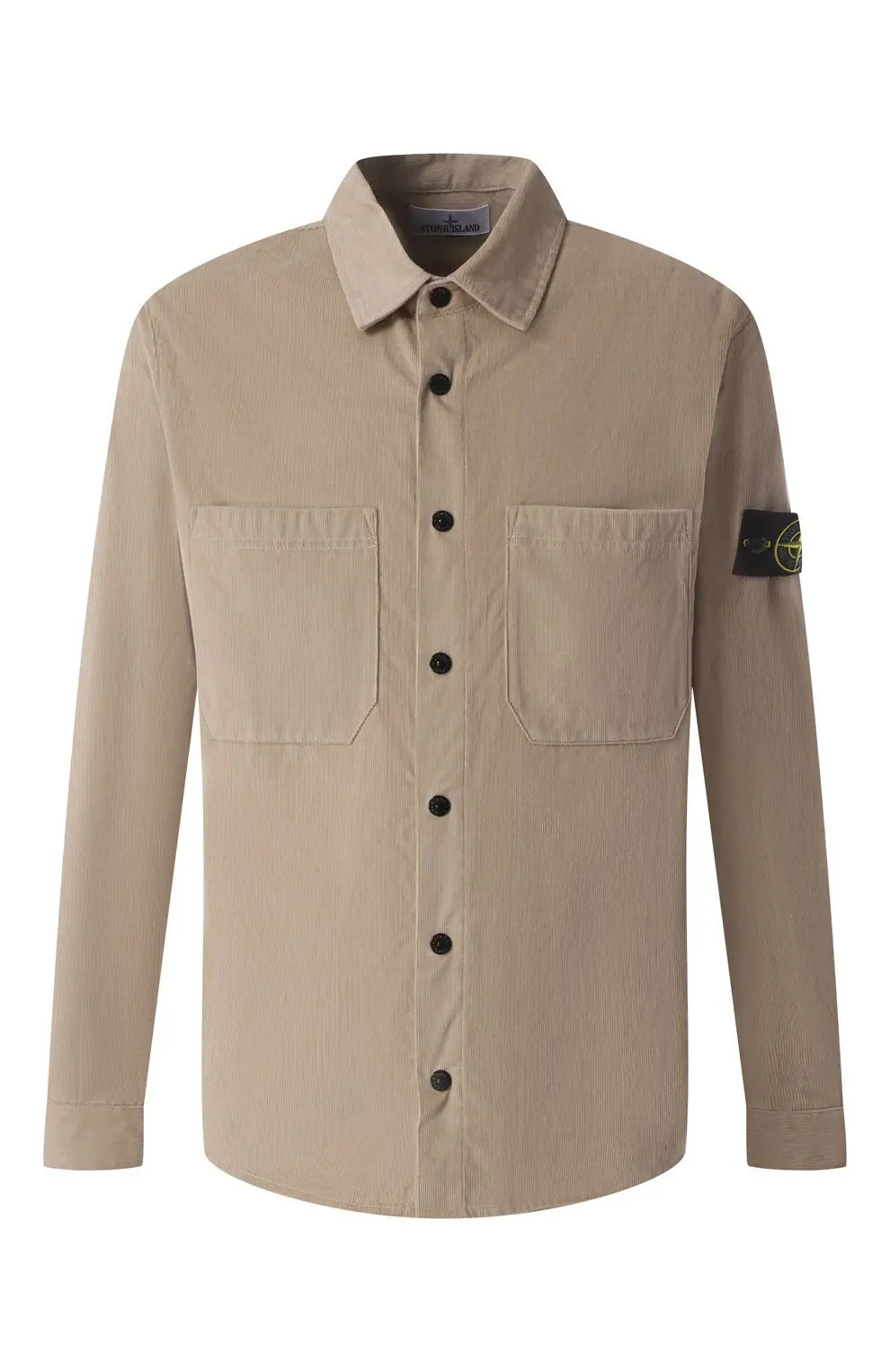 Бежевая хлопковая рубашка Stone Island выполнена из плотного текстурированного хлопка. Модель прямого кроя с застёжкой на пуговицы, двумя накладными нагрудными карманами и классическим воротником. На рукаве — съёмный фирменный патч с эмблемой компаса, подчёркивающий аутентичный стиль бренда.
