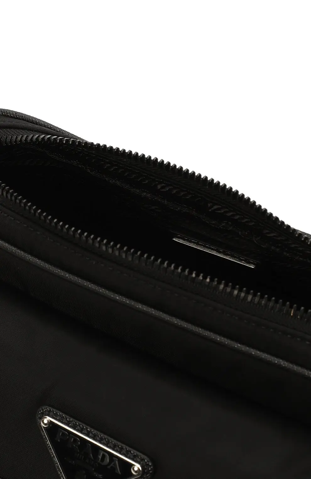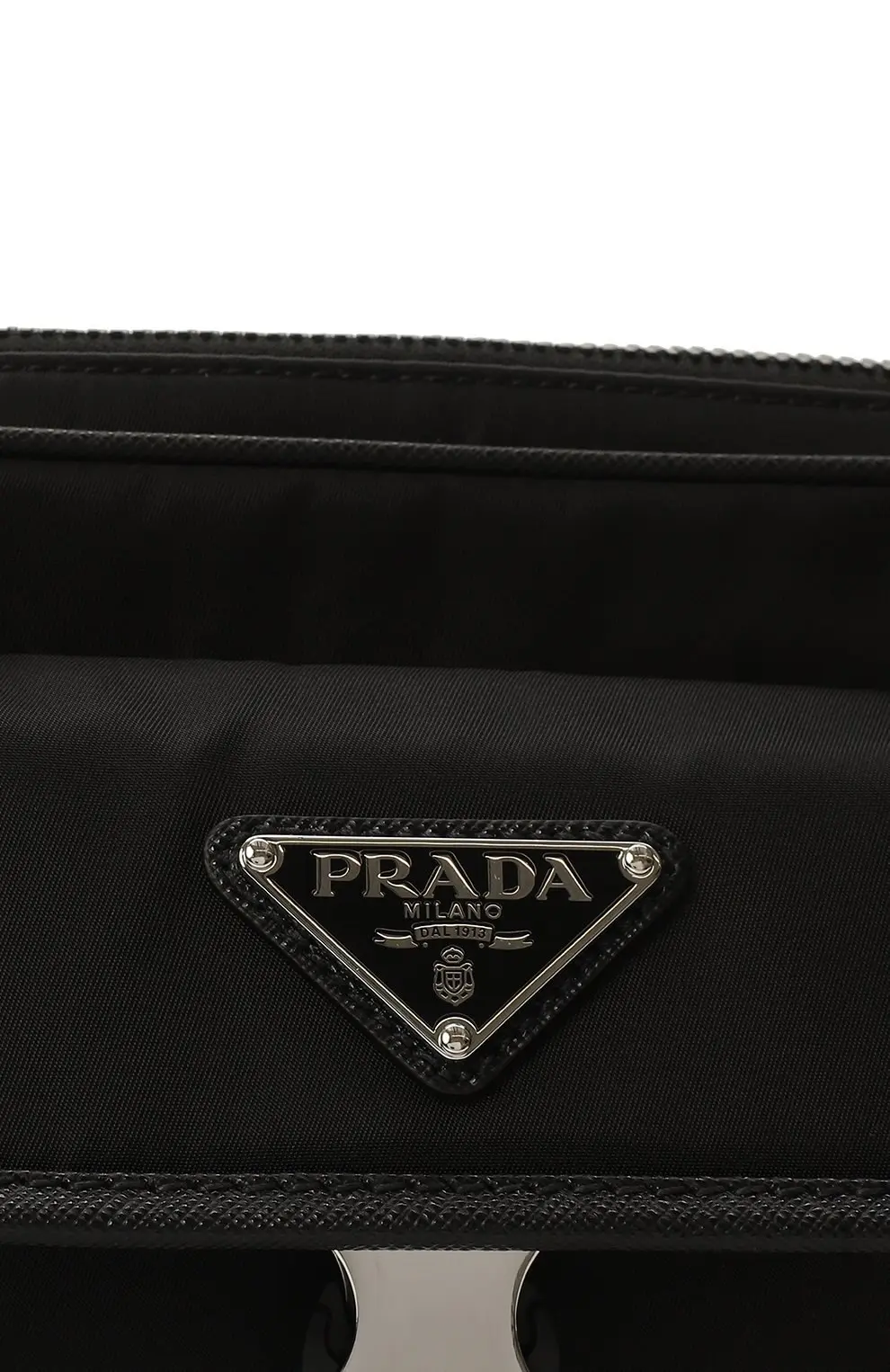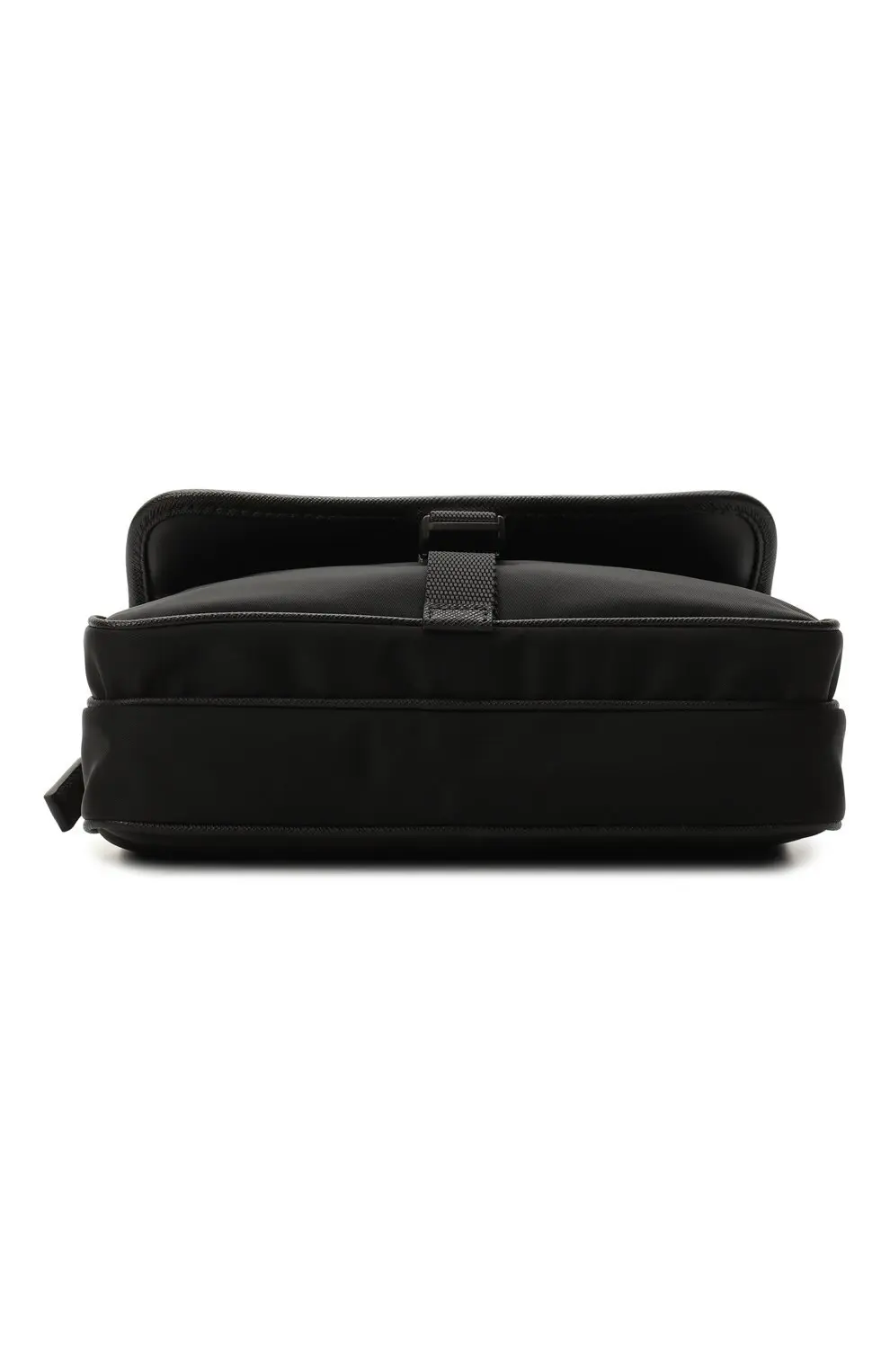 Сумка Prada чёрного цвета выполнена из прочного нейлона — фирменного материала бренда. Аксессуар оформлен клапаном с металлической пряжкой и треугольным логотипом Prada Milano. Практичный дизайн с вместительным основным отделением делает модель идеальной для повседневного использования.