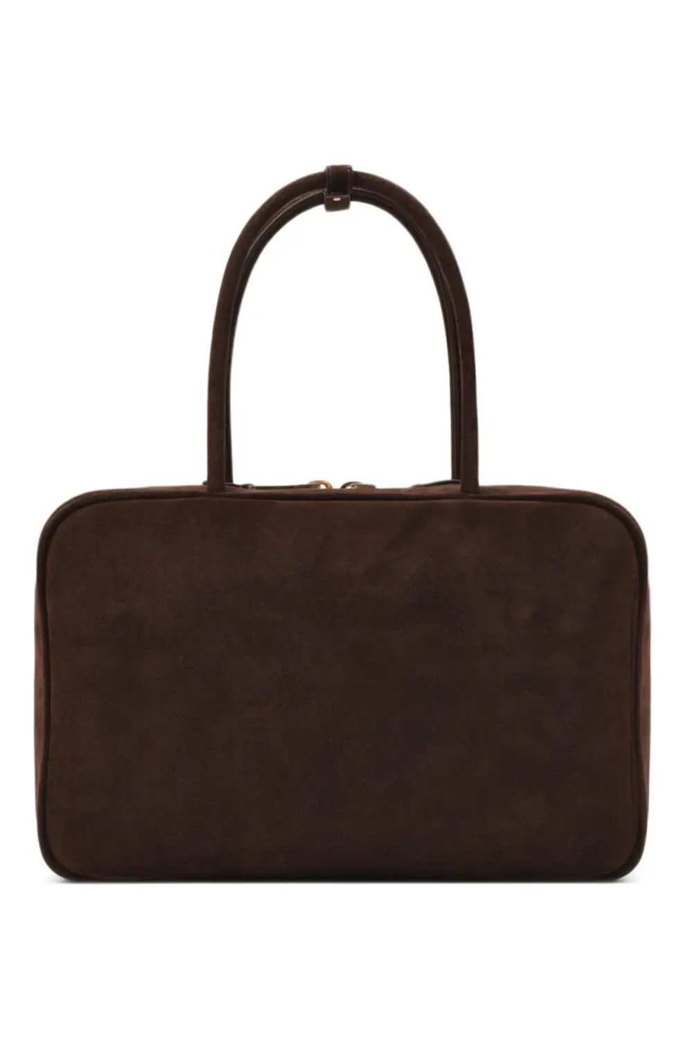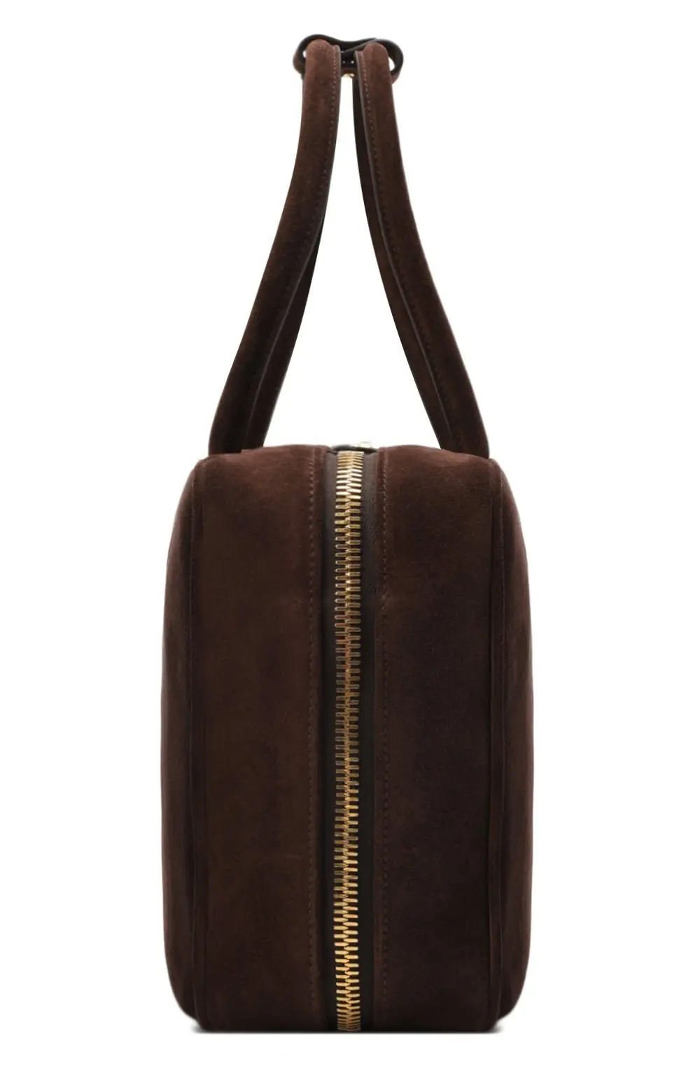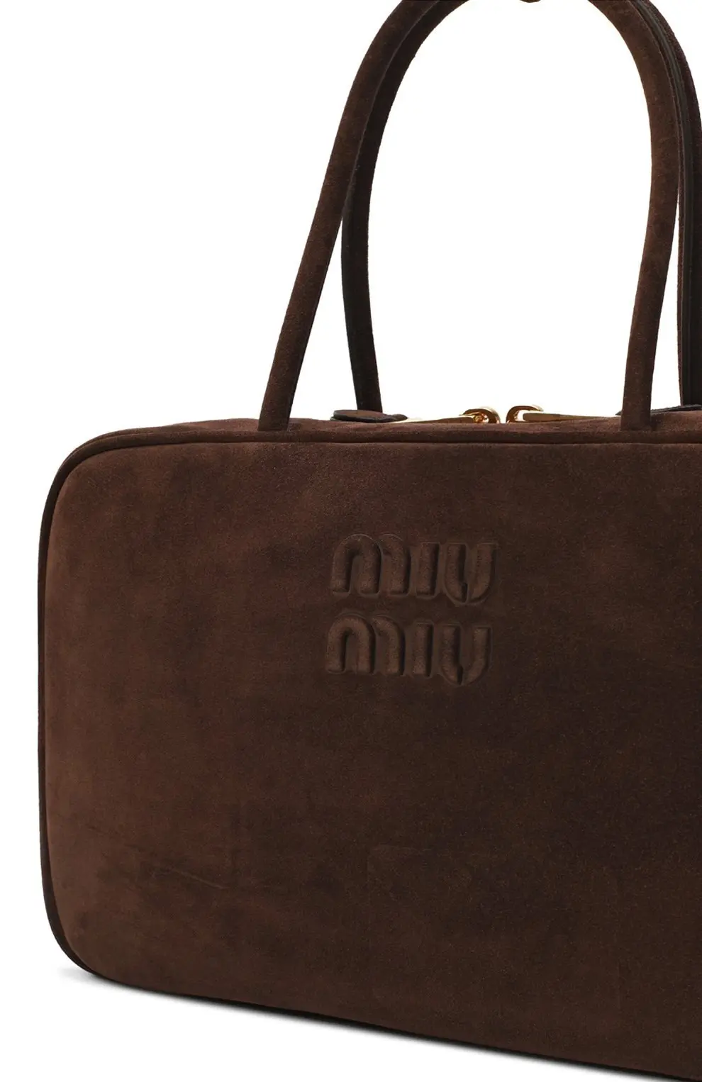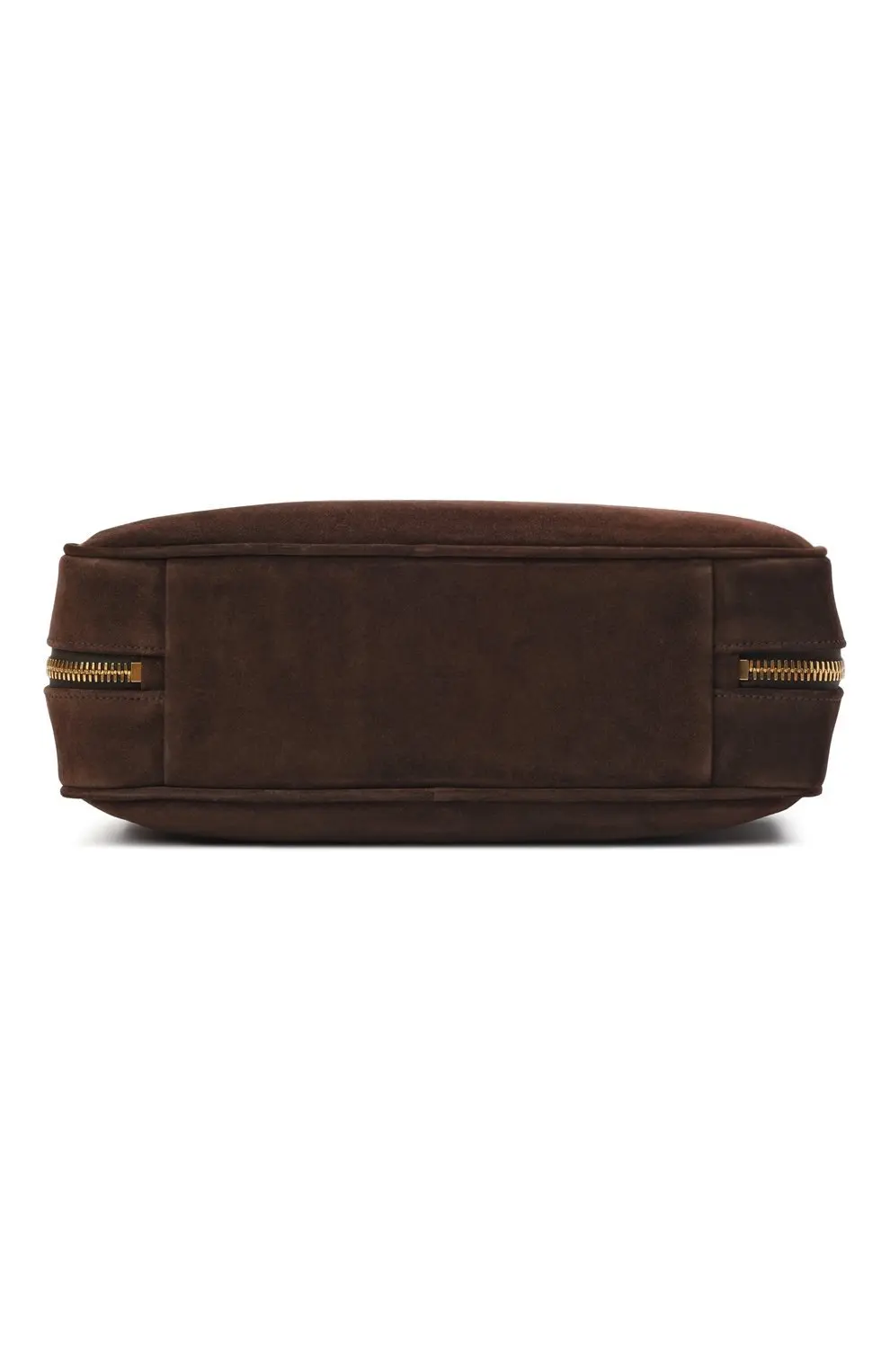 Сумка выполнена из мягкой замши с бархатистой фактурой. Лаконичный прямоугольный силуэт дополнен короткой ручкой и тиснёным логотипом спереди. Модель элегантно завершает как повседневные, так и вечерние образы.