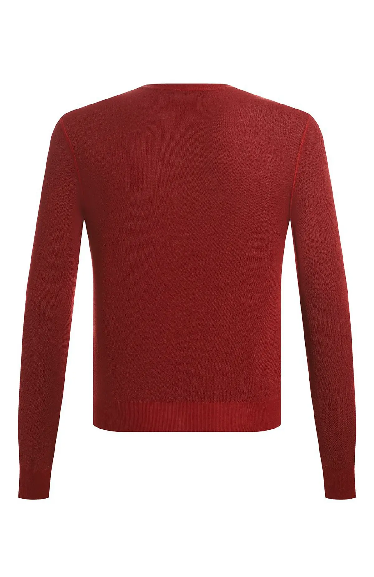 Джемпер из кашемира и шелка Loro Piana выполнен в насыщенном бордовом оттенке. Лаконичный дизайн с круглым вырезом горловины и длинными рукавами подчёркивает изысканную простоту модели. Тонкий трикотаж, сочетающий мягкость кашемира и деликатный блеск шёлка, обеспечивает комфорт и элегантный внешний вид. Изделие станет универсальным элементом гардероба, подходящим как для повседневных, так и для более формальных образов.