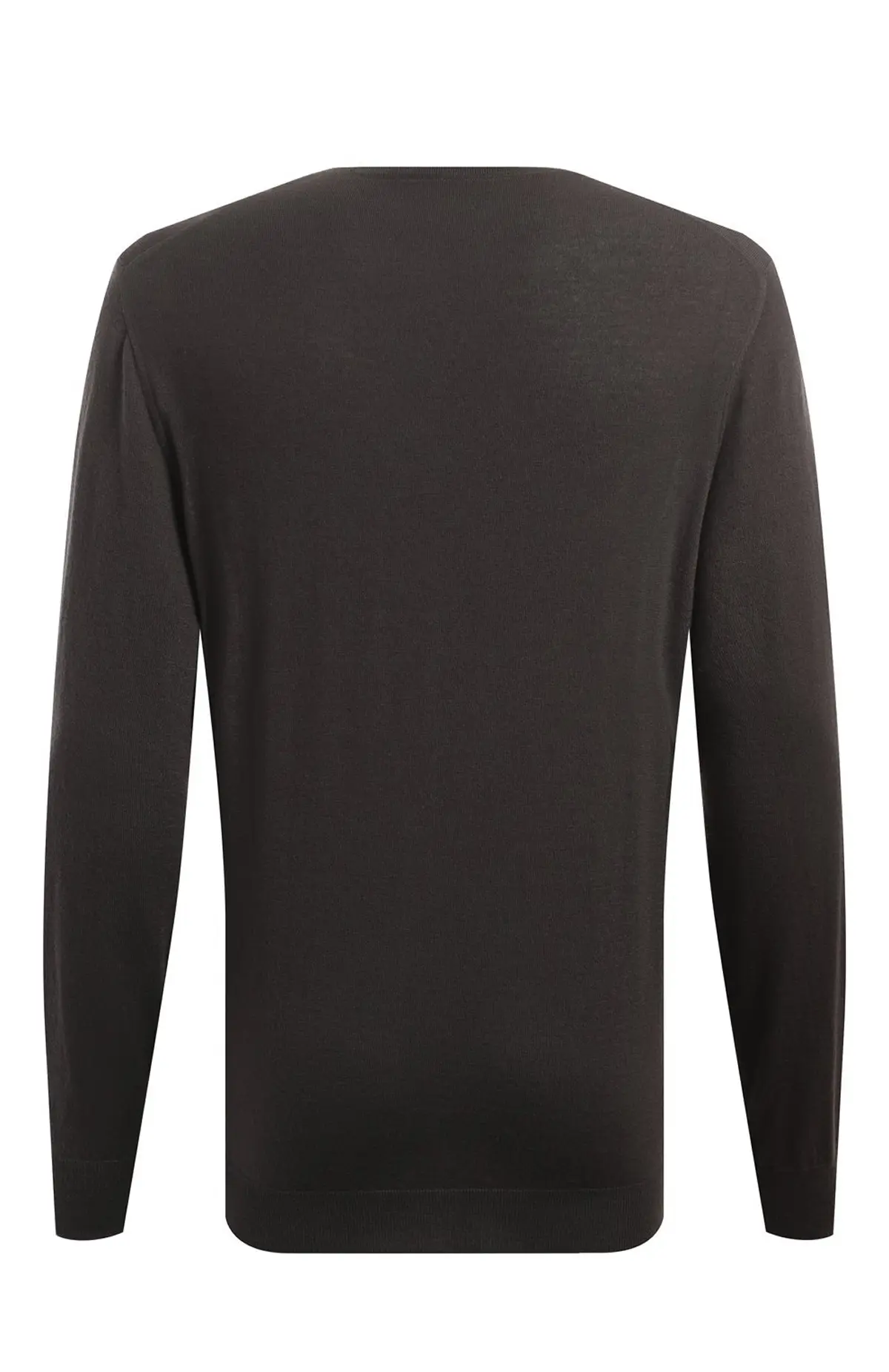Джемпер Loro Piana выполнен из мягчайшего кашемира исключительного качества, обеспечивающего комфорт и тепло при минимальном весе. Модель с круглым вырезом и тонкой вязкой отличается лаконичным дизайном и безупречной посадкой. Универсальный тёмно-коричневый оттенок делает изделие идеальной базой для элегантных и повседневных образов.