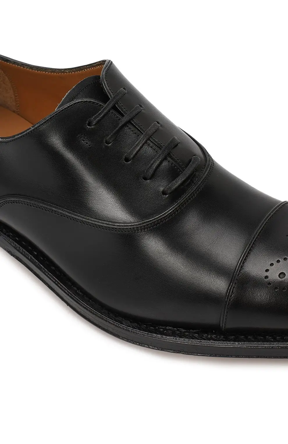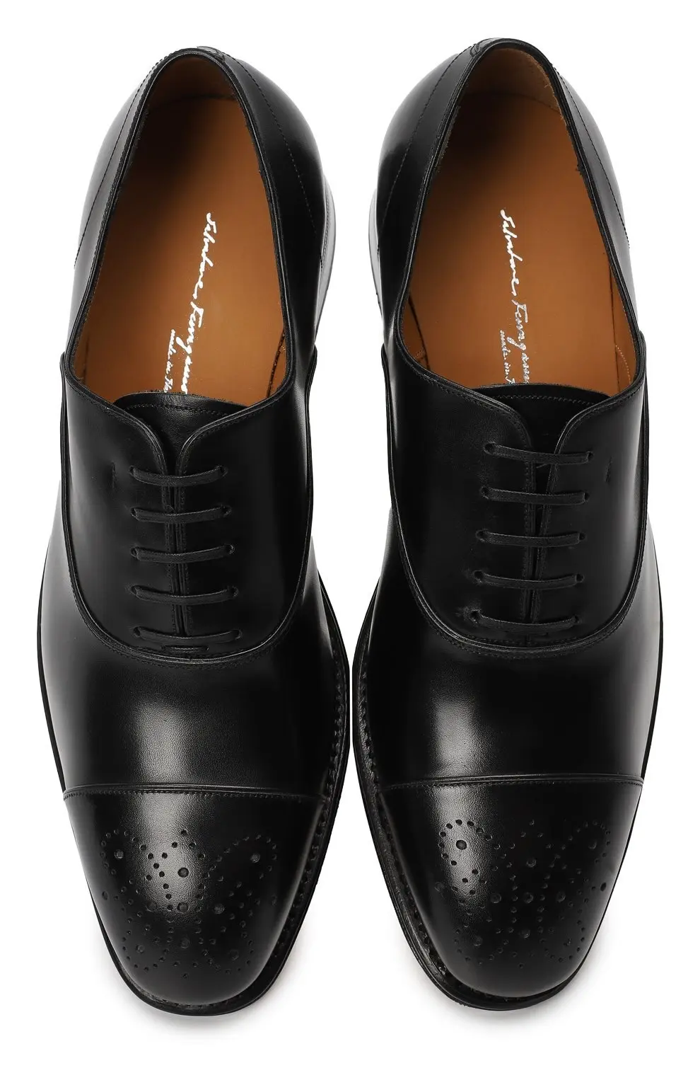 Оксфорды от Salvatore Ferragamo — образец безупречной классики и итальянского мастерства. Пара выполнена из гладкой полированной кожи с аккуратным перфорированным декором на мыске. Лаконичный силуэт и филигранная отделка подчеркивают статусность и элегантность, делая обувь идеальным выбором для делового гардероба и торжественных случаев.