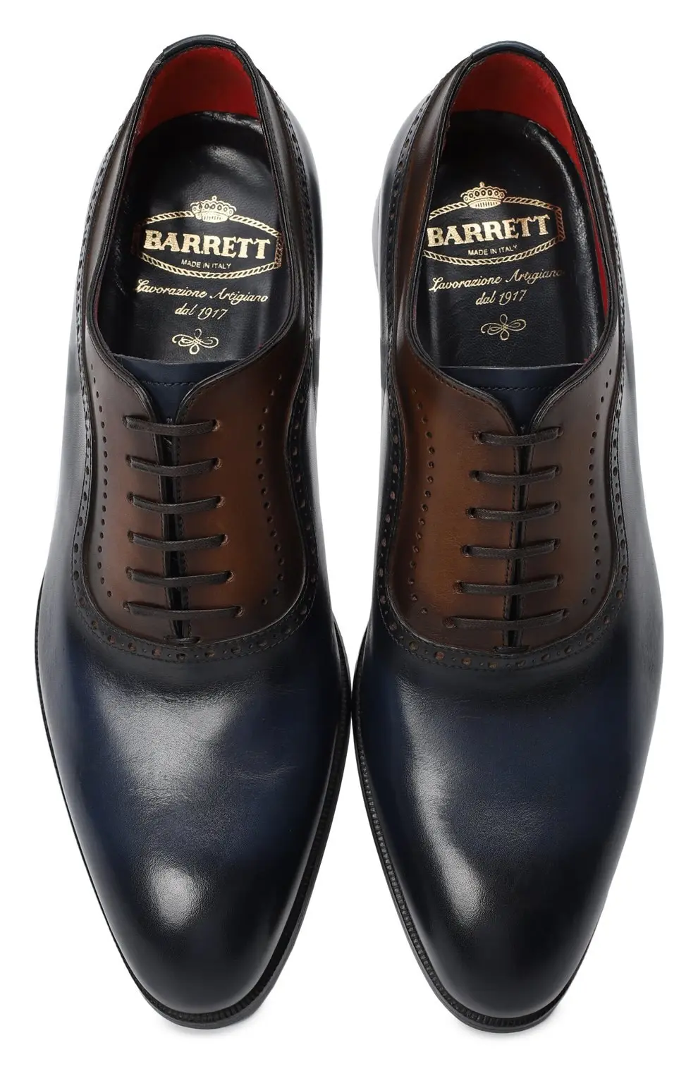 Оксфорды Barrett — это воплощение классической элегантности и безупречного итальянского мастерства. Модель выполнена из высококачественной полированной кожи с плавным градиентом оттенков и аккуратным перфорированным декором по линии берцев. Тонкая подошва и традиционная шнуровка подчёркивают строгий силуэт, делая обувь универсальным решением для делового и торжественного гардероба.