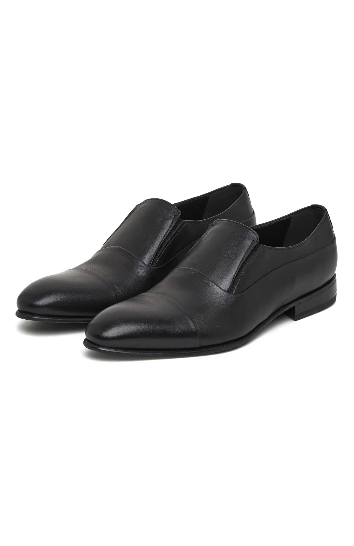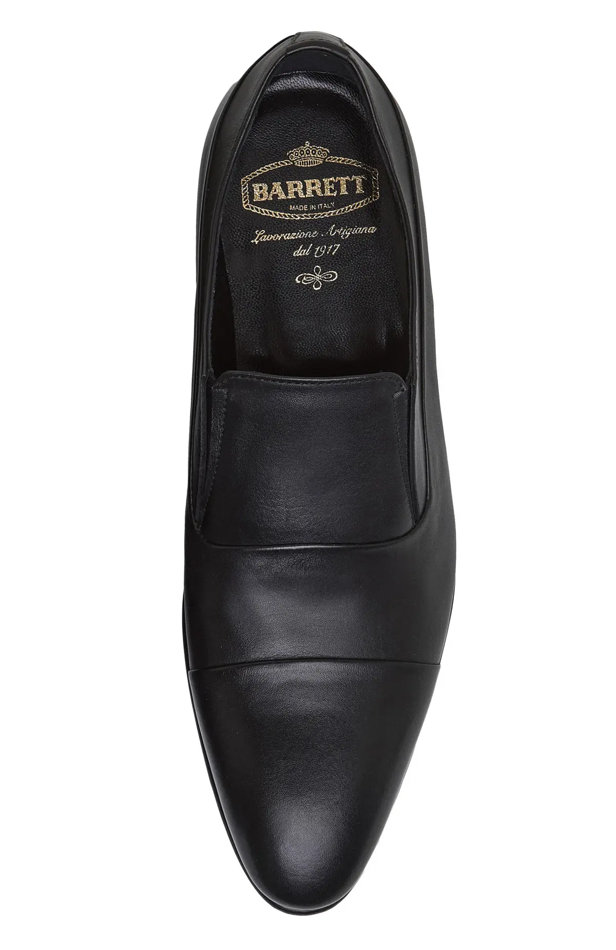 Туфли Barrett — элегантная пара из гладкой черной кожи с матовым блеском. Модель без шнурков оформлена эластичными вставками по бокам, что обеспечивает идеальную посадку и комфорт при носке. Классический дизайн с аккуратным мысом и декоративным швом на союзке подчеркивает утонченный стиль бренда. Подходят для строгих деловых костюмов и торжественных мероприятий.
