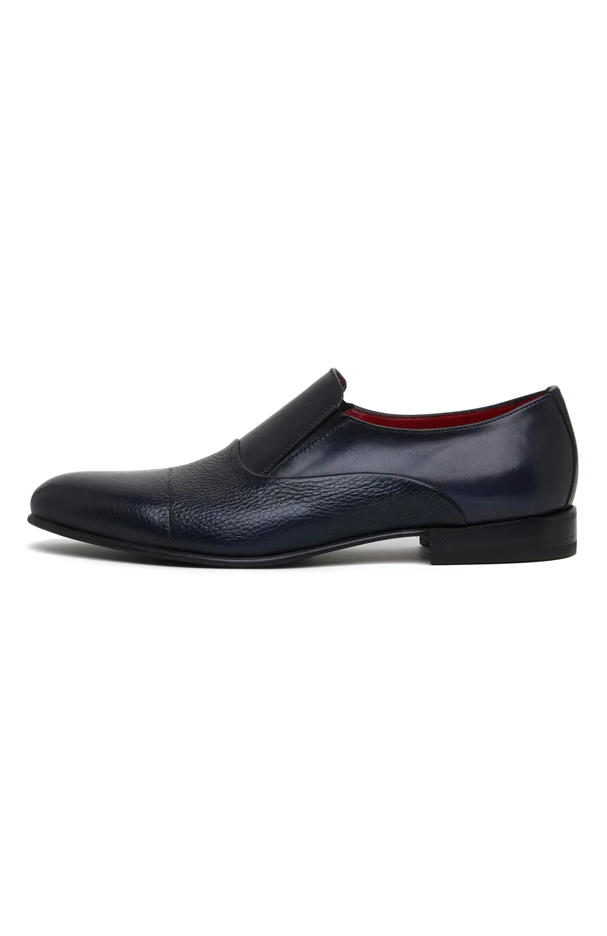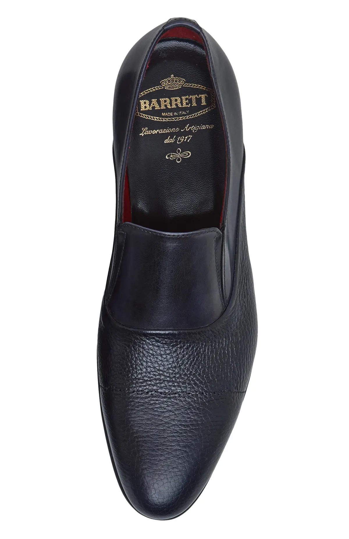 Туфли Barrett — изысканная модель из мягкой фактурной кожи глубокого синего цвета. Эластичные вставки по бокам обеспечивают удобную посадку и легкость при надевании. Контрастная внутренняя отделка в насыщенном бордовом тоне подчеркивает характер бренда. Благодаря утонченному силуэту и премиальной отделке пара идеально дополнит как строгий костюм, так и повседневный smart casual образ.