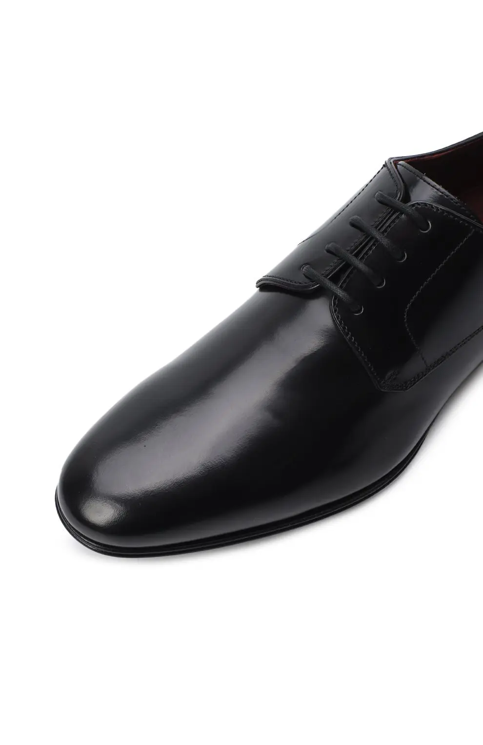 Туфли выполнены из гладкой чёрной кожи с лёгким глянцевым эффектом. Лаконичный силуэт с аккуратным мыском подчёркивает графичность линий и изысканную простоту формы. Умеренный каблук обеспечивает комфортное прилегание и добавляет образу элегантности.