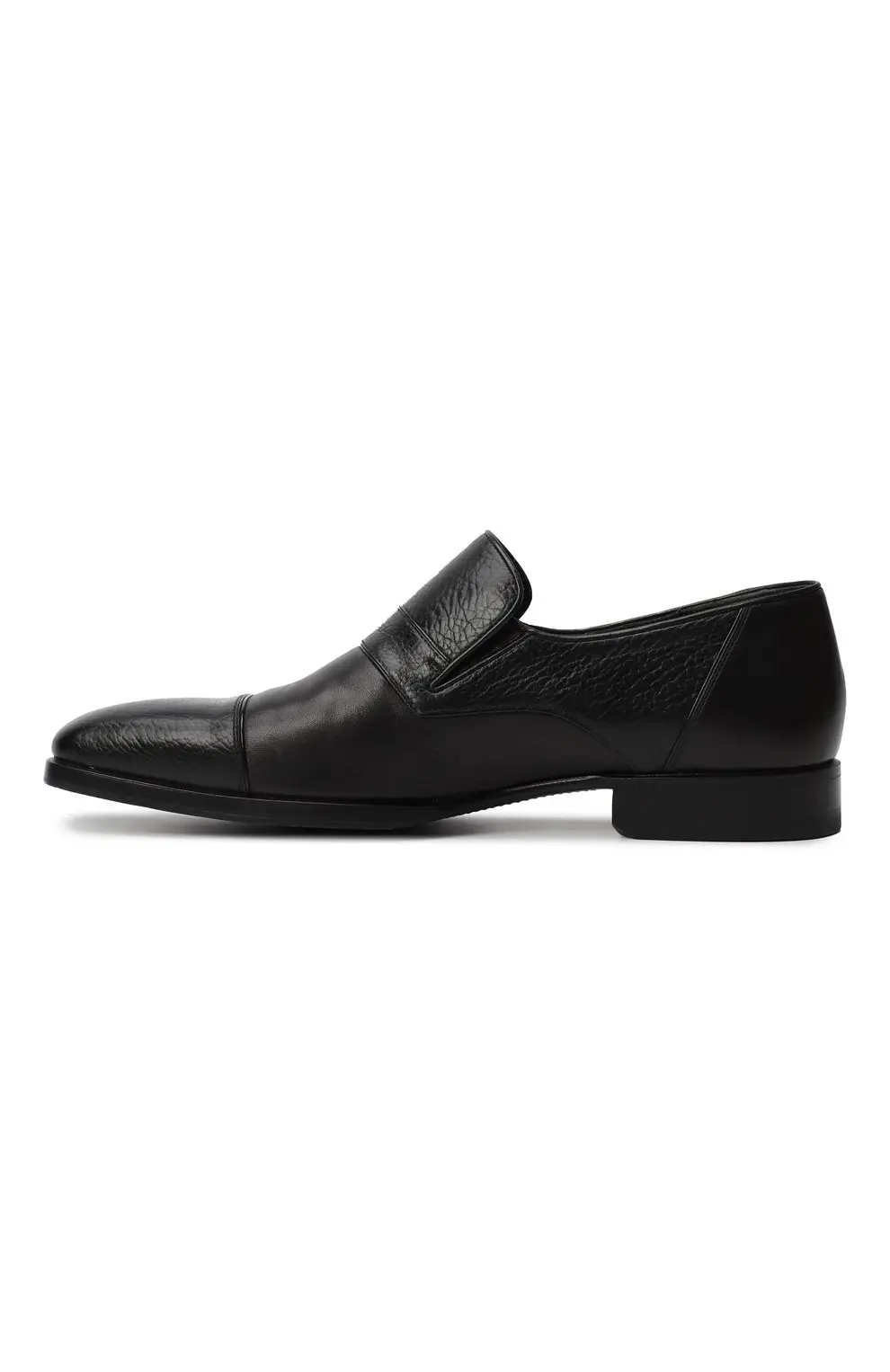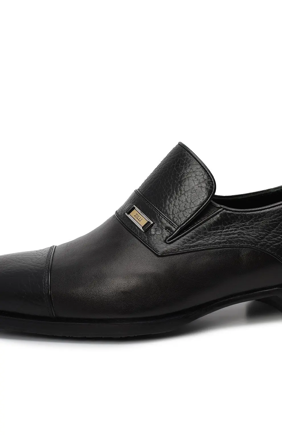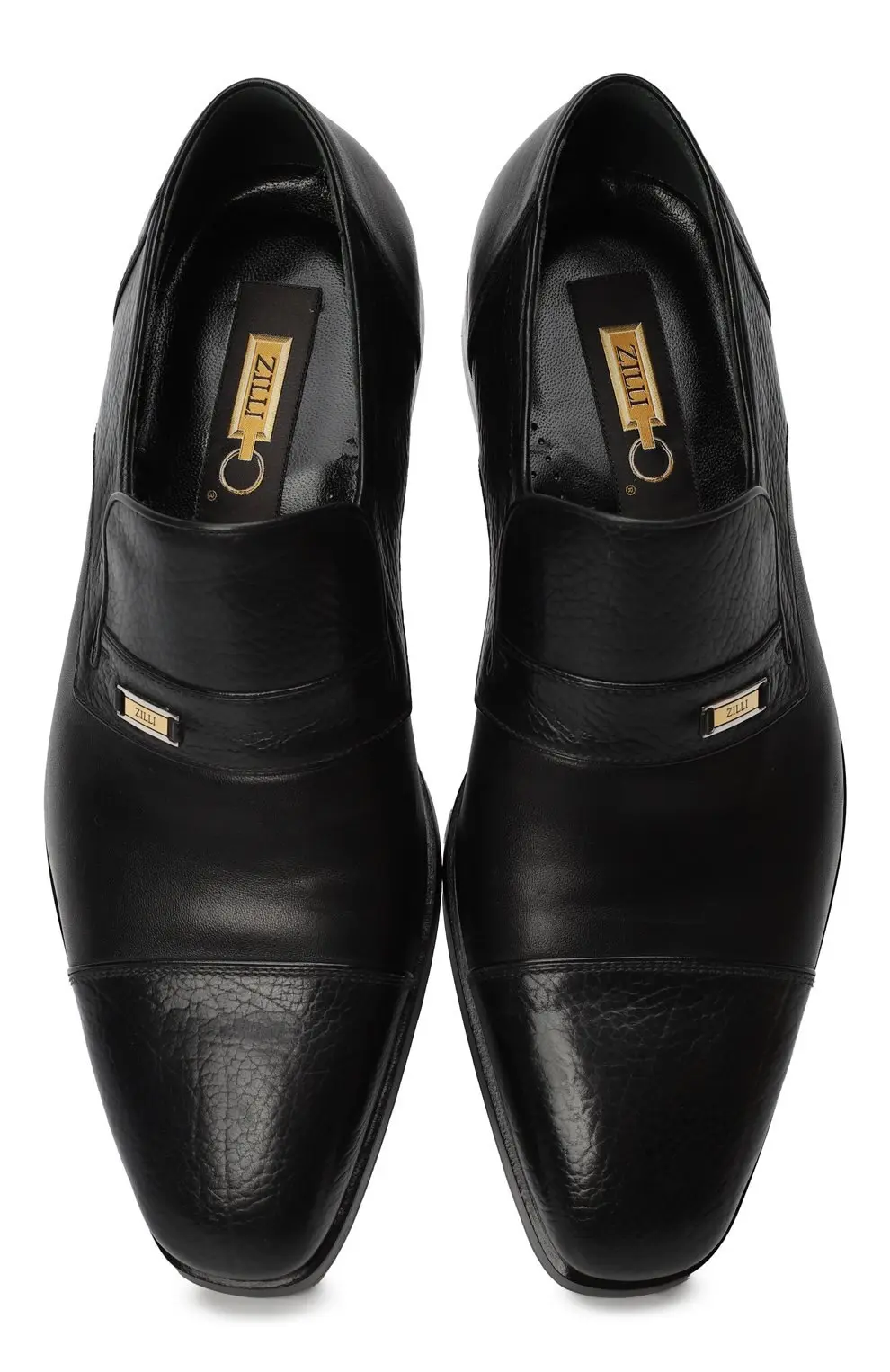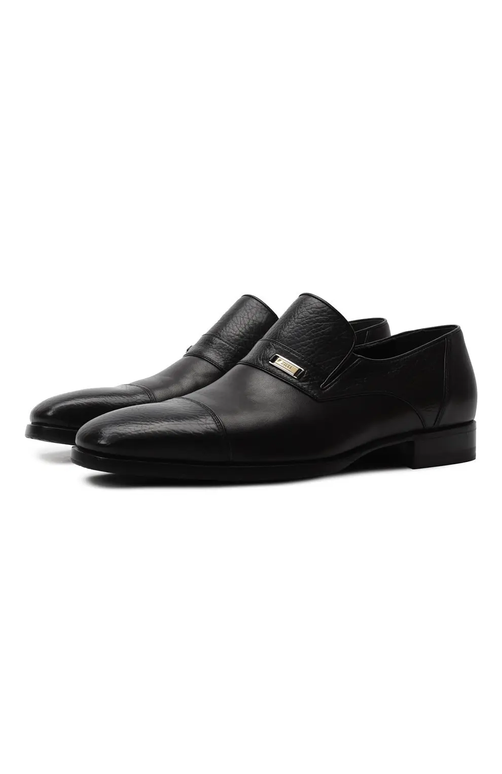 Лоферы Zilli из чёрной телячьей кожи сочетают матовую гладкость и фактурный рисунок зерна, создавая благородный контраст. Актуальный минимализм подчеркивается металлической пластиной с логотипом бренда. Внутренняя отделка выполнена из мягкой кожи для максимального комфорта, а подошва — из прочной кожи с противоскользящим эффектом.