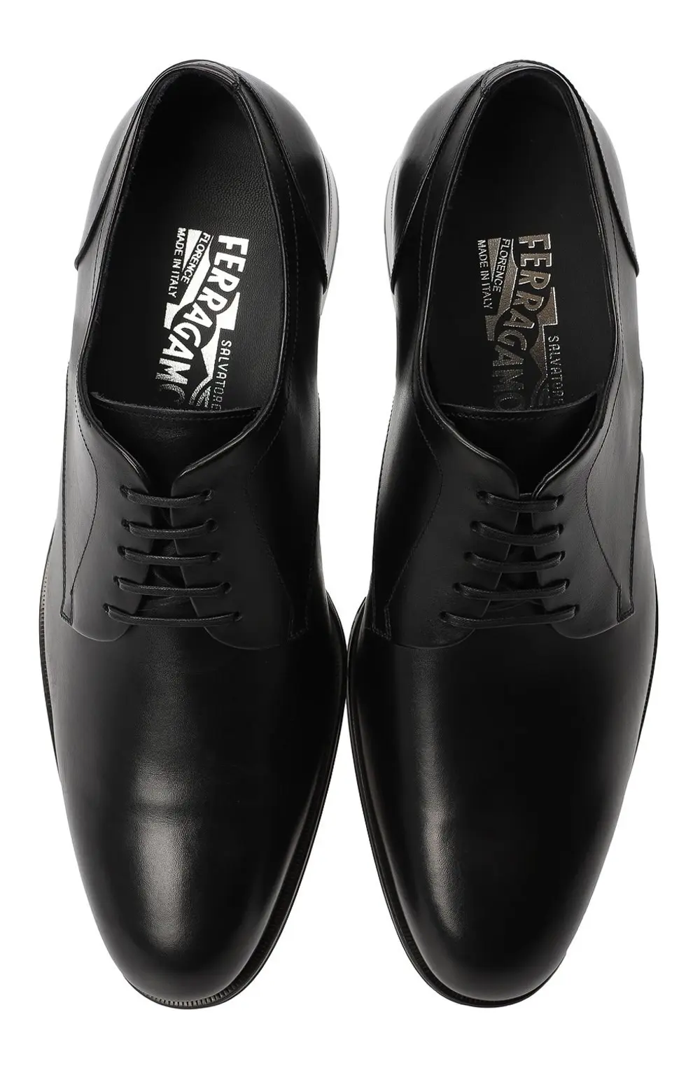 Классические дерби Salvatore Ferragamo из гладкой чёрной кожи отличаются лаконичным дизайном и безупречным кроем. Универсальная модель для формальных и повседневных образов.