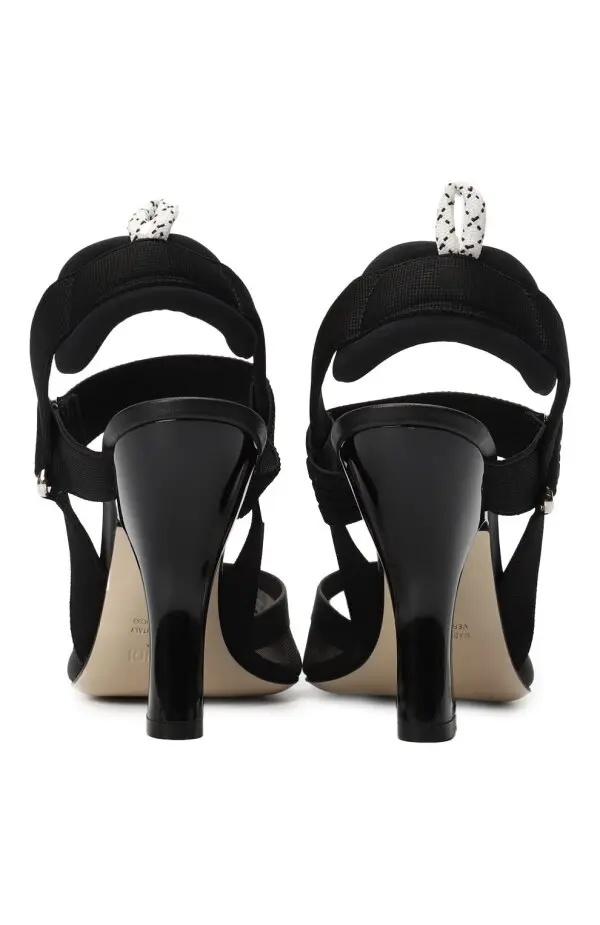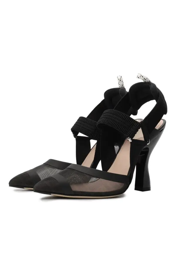 Туфли Fendi в современном дизайне сочетают в себе изящество и спортивные акценты. Модель выполнена из прозрачной сетки с матовыми вставками и дополнена широкими эластичными ремнями, которые фиксируют стопу и придают образу динамичность. Высокий изогнутый каблук подчёркивает женственность, а мягкие задники с петлями обеспечивают комфорт и лёгкость в носке. Это стильное решение для тех, кто ценит баланс между элегантностью и модной функциональностью.