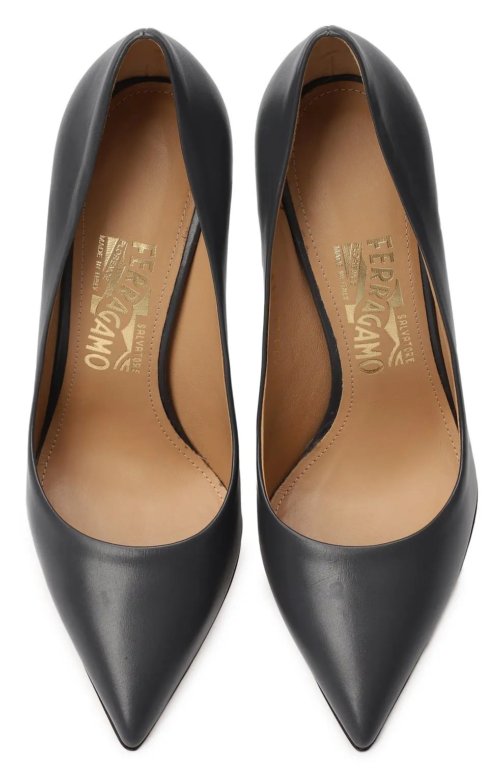 Классические туфли-лодочки Salvatore Ferragamo выполнены из гладкой темно-серой кожи, олицетворяющей элегантность и сдержанную роскошь бренда. Модель с заостренным мыском и высоким каблуком-шпилькой придает силуэту стройность и утонченность, идеально дополняя как деловые, так и вечерние образы. Внутренняя отделка из мягкой кожи обеспечивает комфорт при носке, а безупречное качество исполнения делает обувь универсальной инвестицией в базовый гардероб.