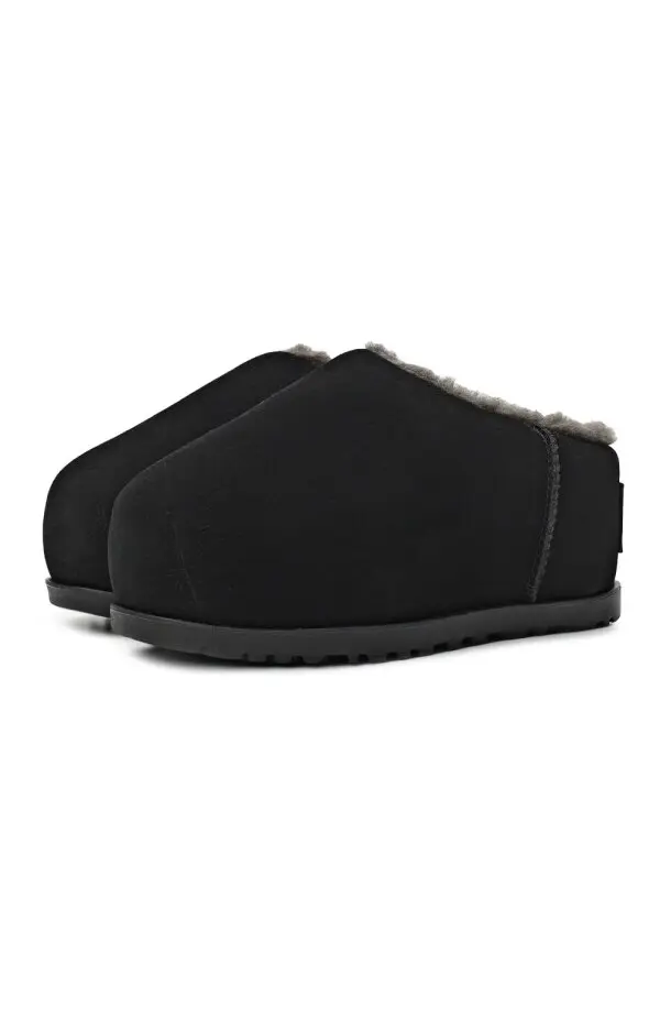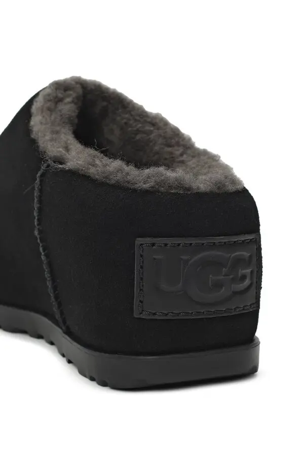 Сабо UGG Pumped в чёрном цвете — минималистичная и стильная модель, выполненная из мягкой замши с утеплённой внутренней отделкой из овчины UGGplush™, которая обеспечивает тепло и комфорт. Лаконичный силуэт и лёгкая резиновая подошва делают их практичными как для дома, так и для повседневных выходов на улицу.