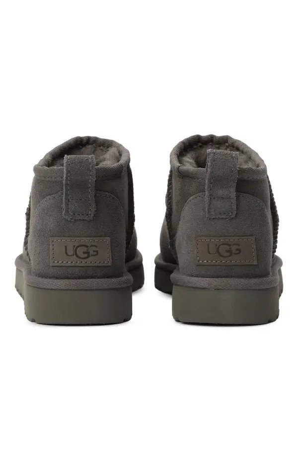 Полусапоги UGG Classic Ultra Mini в сером оттенке — универсальная модель, сочетающая лаконичный дизайн и фирменный комфорт бренда. Выполнены из мягкой замши с защитной обработкой от влаги и утеплены натуральной овчиной UGGplush™. Укороченный силуэт придаёт современный вид, а лёгкая и прочная подошва Treadlite by UGG™ обеспечивает амортизацию и износостойкость.