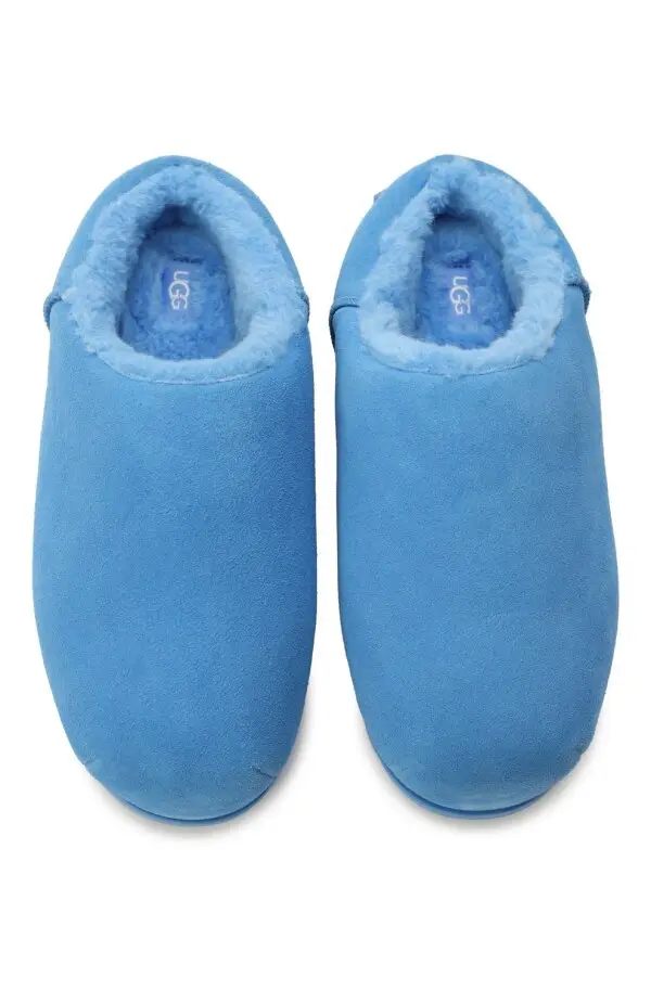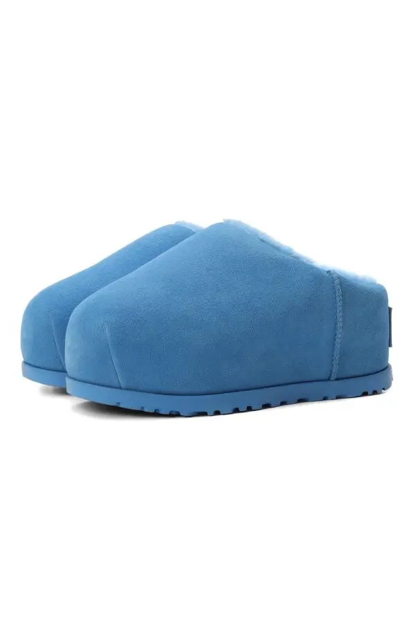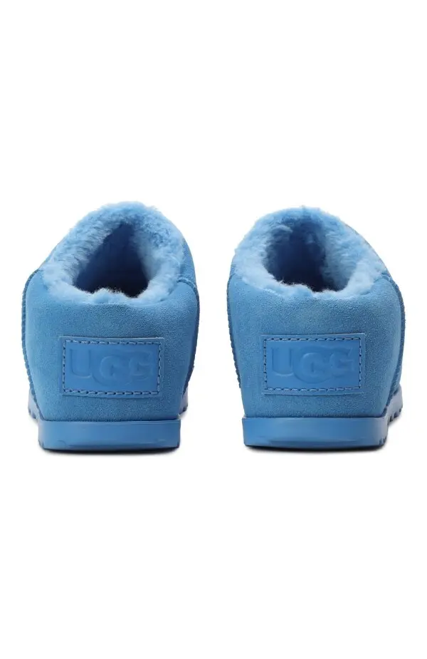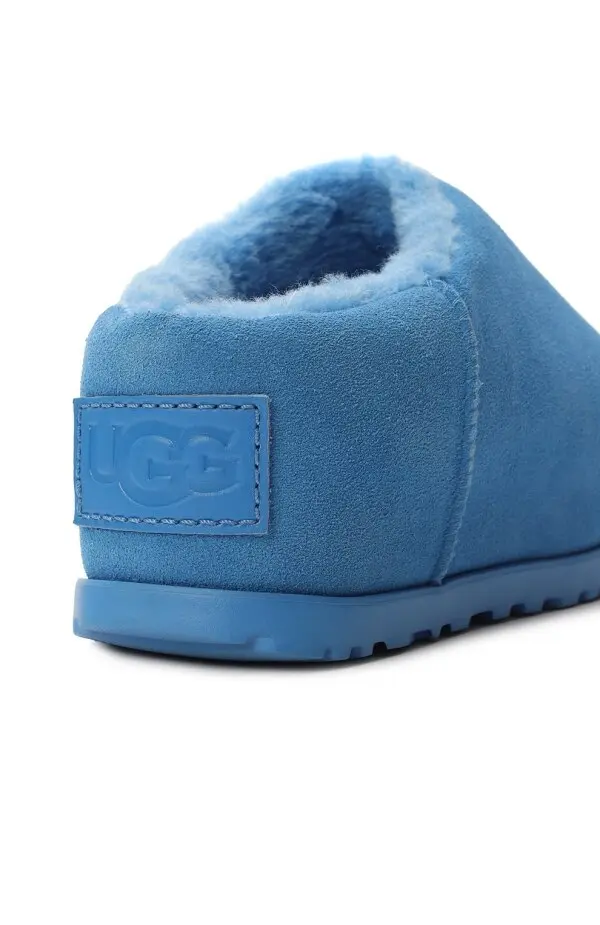 Сабо UGG Pumped в голубом цвете — стильная модель из мягкой замши с фирменной овчиной UGGplush™ внутри, обеспечивающей тепло и комфорт. Яркий оттенок придаёт образу акцент, а минималистичный силуэт и лёгкая резиновая подошва делают пару универсальной как для дома, так и для прогулок.