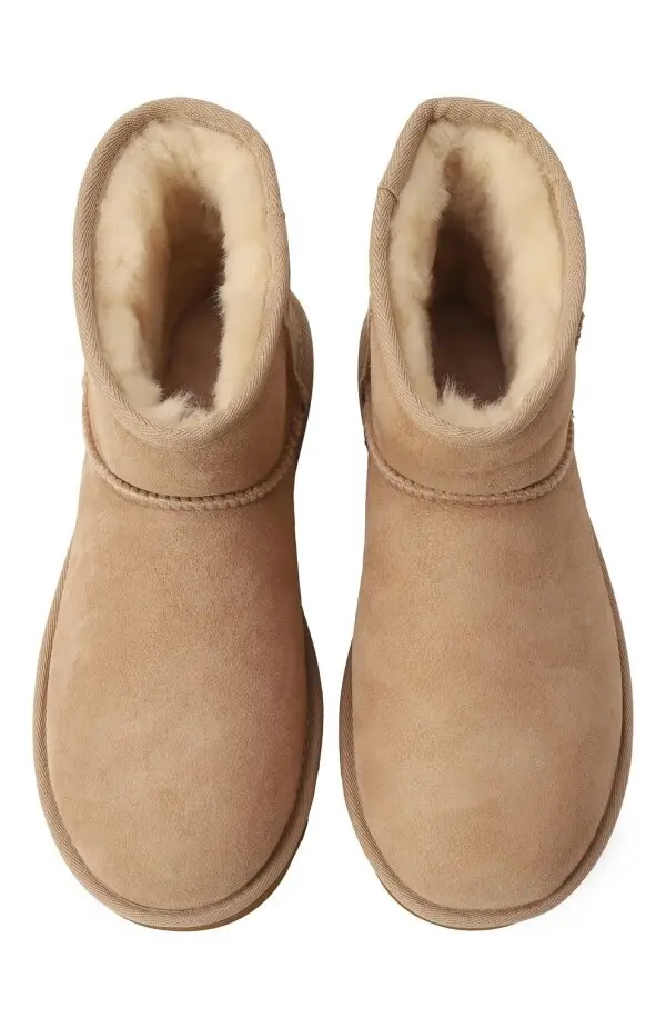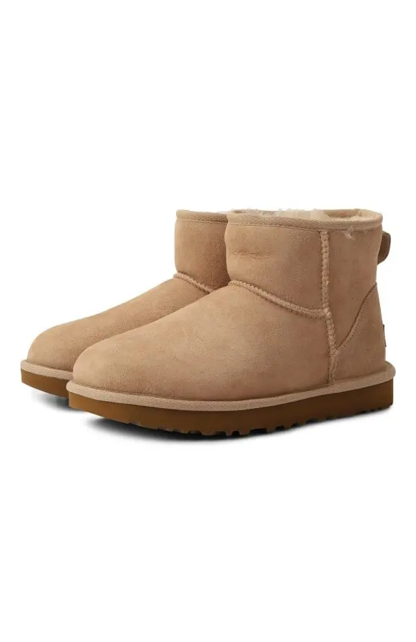 Полусапоги UGG Classic Mini II в светло-бежевом оттенке. Эта модель выполнена из фирменной замши с водоотталкивающей пропиткой, утеплена мягким UGGplush™ из шерсти и лиоцелла. Классическая высота до щиколотки делает их универсальными для повседневных образов, а лёгкая подошва Treadlite by UGG™ обеспечивает амортизацию и комфорт.