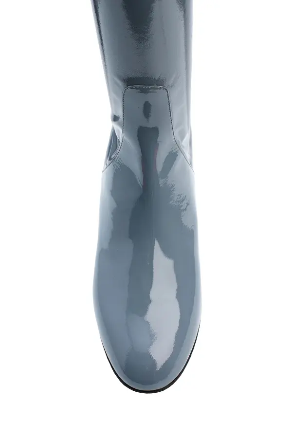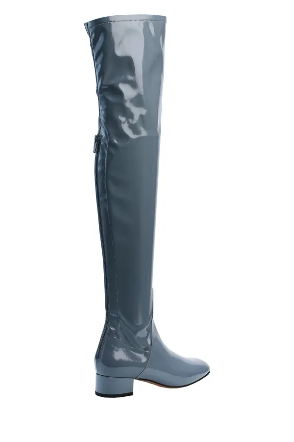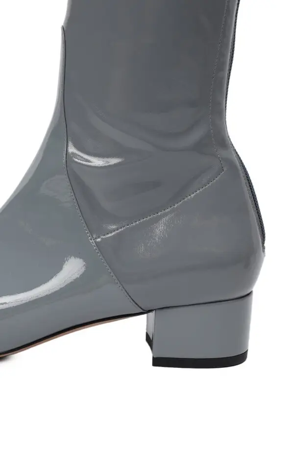 Ботфорты Stretch Valentino выполнены из эластичного лакированного материала в благородном сером оттенке. Облегающий фасон подчеркивает форму ноги, создавая изысканный и современный силуэт. Невысокий устойчивый каблук добавляет комфорта при носке, а глянцевая поверхность придает образу эффектный и утончённый акцент.