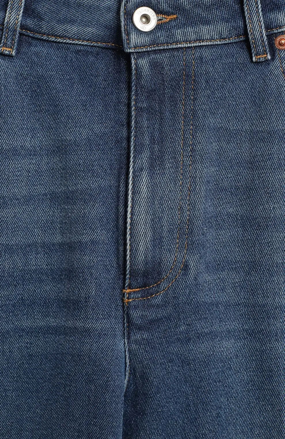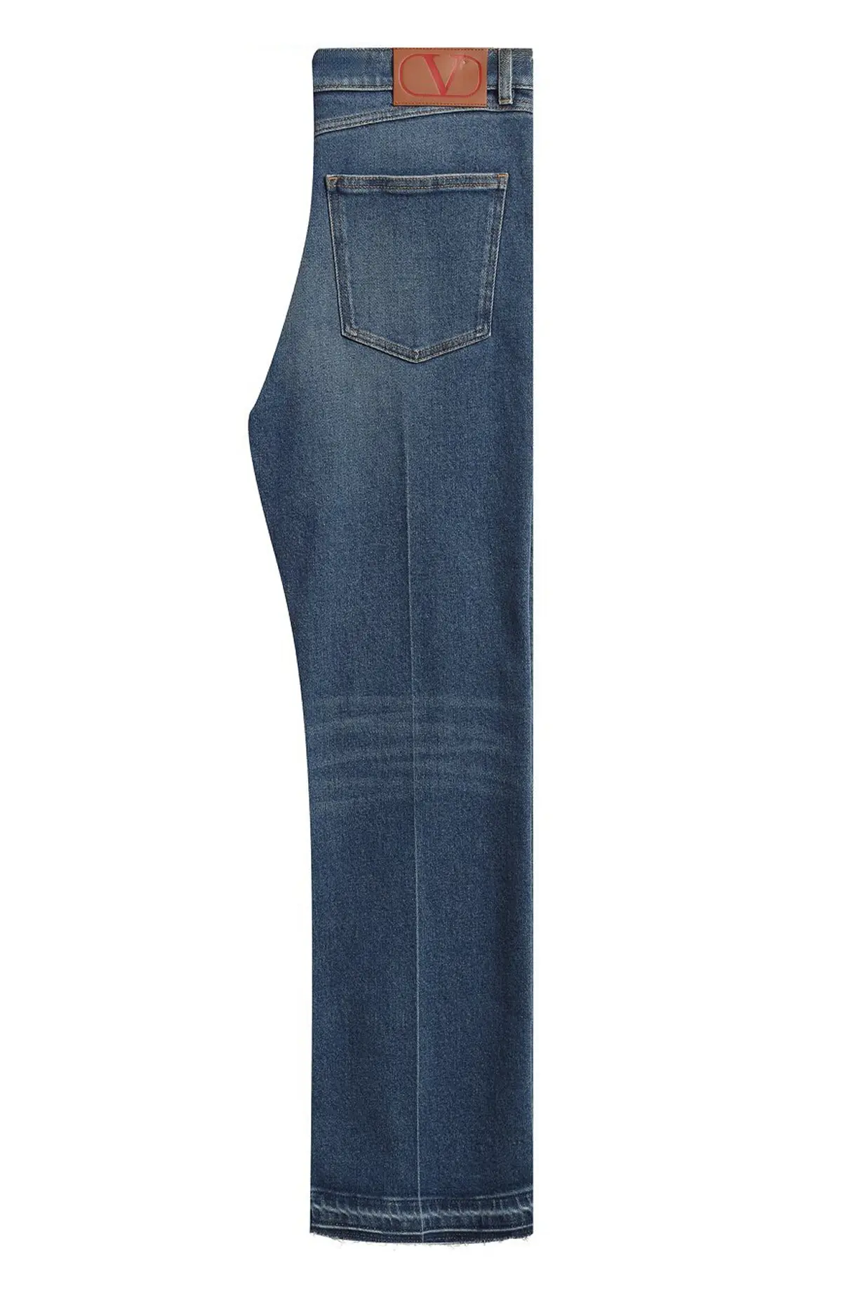 Джинсы Valentino выполнены из плотного хлопкового денима синего оттенка с лёгким эффектом выцветания. Модель с прямыми широкими брючинами и необработанным краем создаёт современный силуэт в стиле casual chic. Универсальный вариант для повседневных образов.
