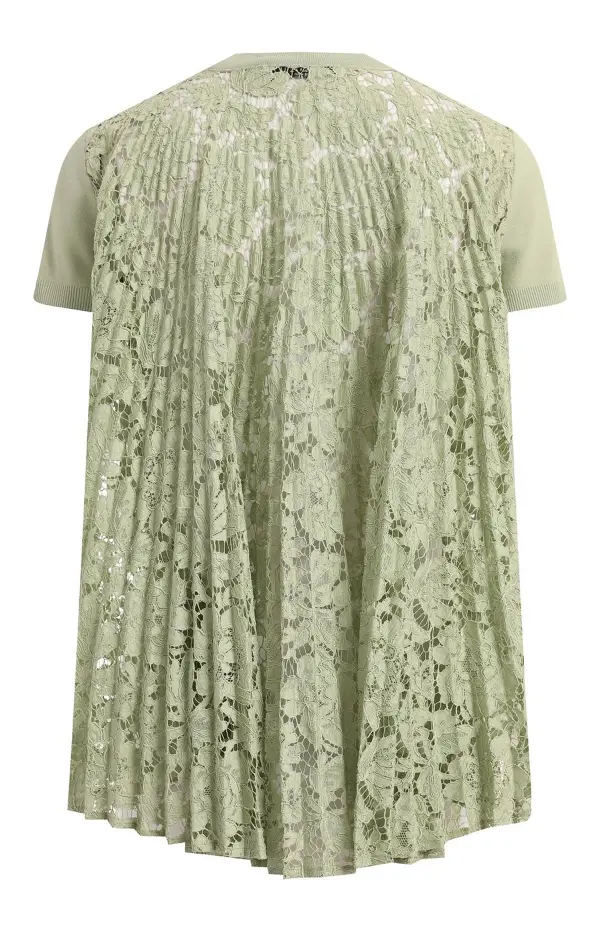 Топ Valentino из мягкой вискозы мятного оттенка дополнен кружевной вставкой, создающей многослойный эффект. Элегантная модель идеально сочетается с юбками и брюками в пастельных тонах.