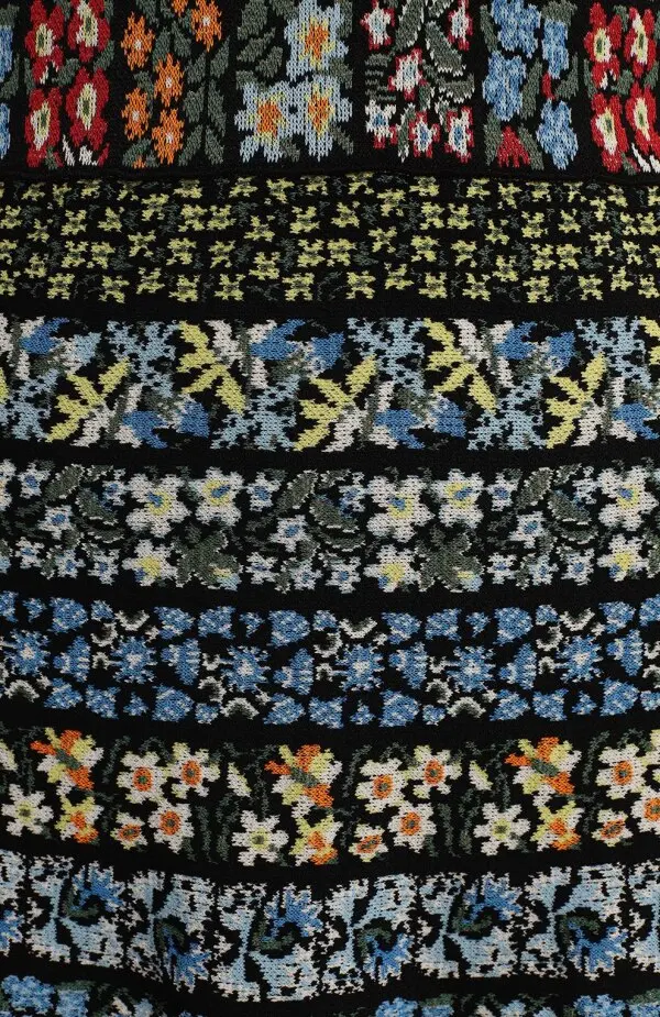 Платье Valentino из вискозы с цветочным орнаментом. Контрастная вышивка и кружевные вставки на рукавах придают модели изысканный и женственный характер.