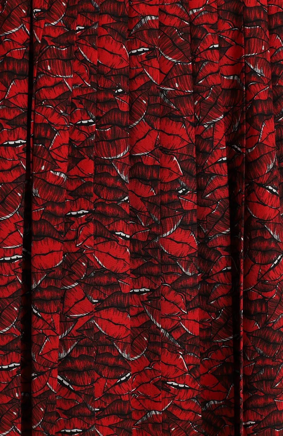 Шёлковая юбка Valentino длины миди с ярким принтом в оттенках красного и чёрного. Лёгкая драпировка подчёркивает женственный силуэт, создавая мягкое движение при ходьбе.