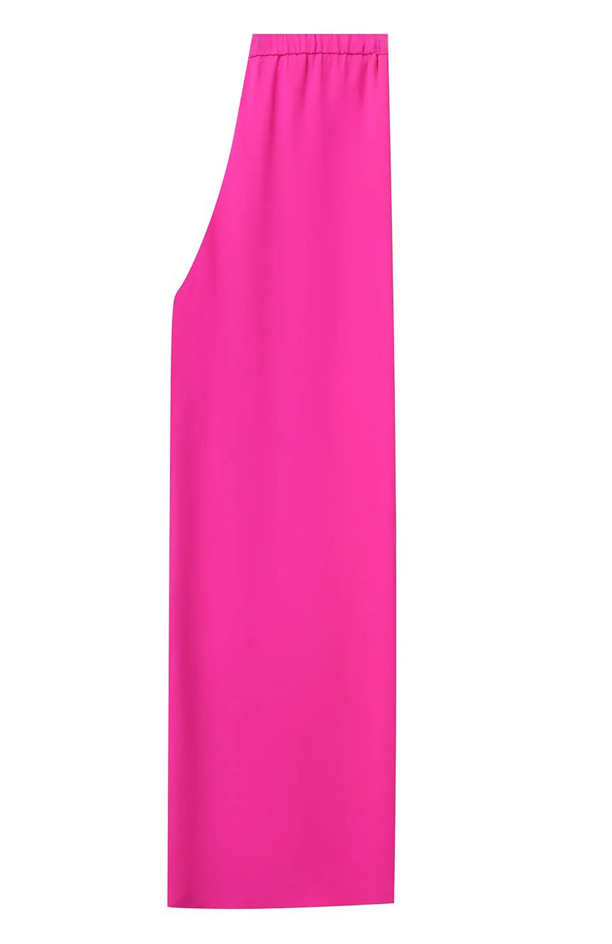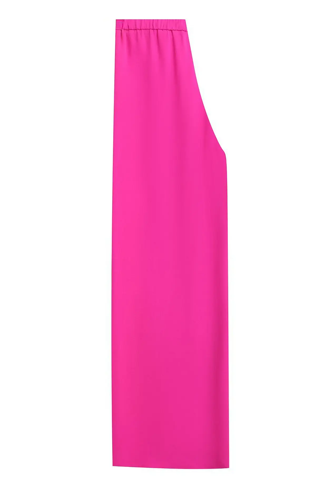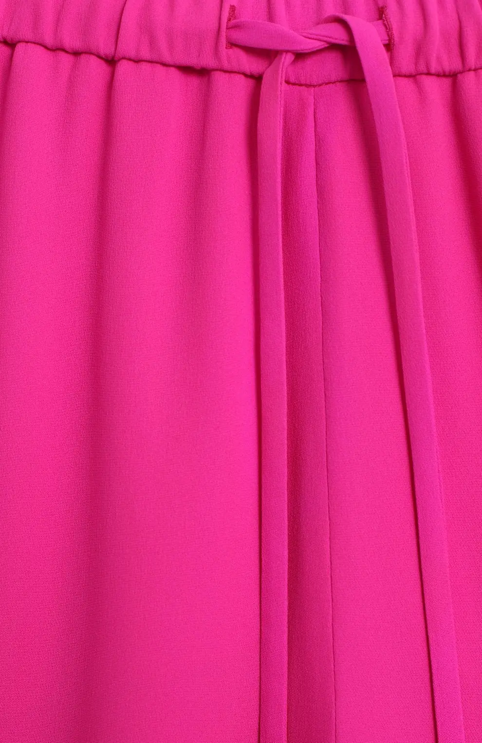 Шёлковые брюки Valentino в насыщенном оттенке фуксии. Модель свободного кроя с эластичным поясом и завязками сочетает элегантность и комфорт, идеально подходя как для вечерних образов, так и для расслабленного дневного стиля.
